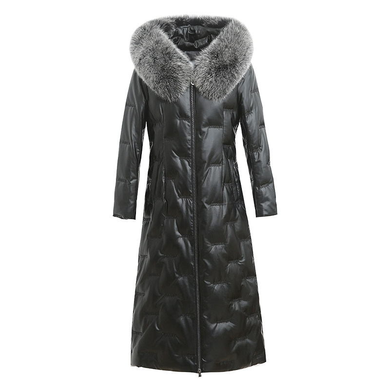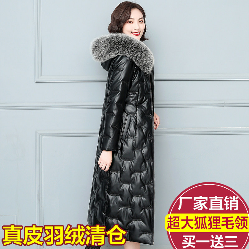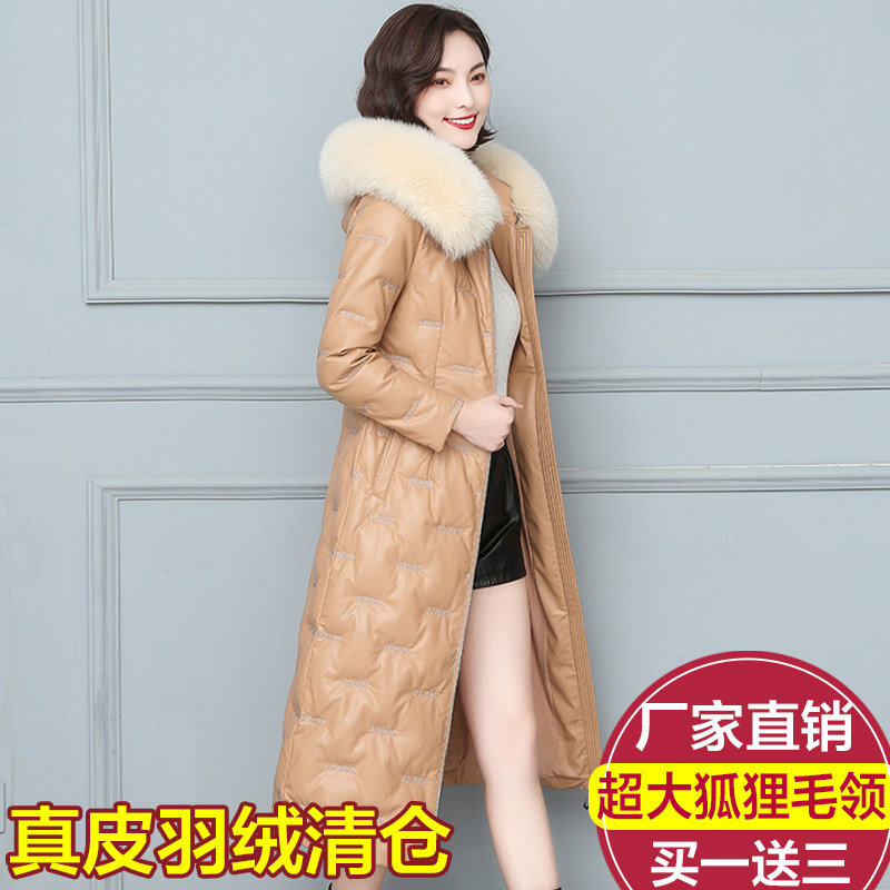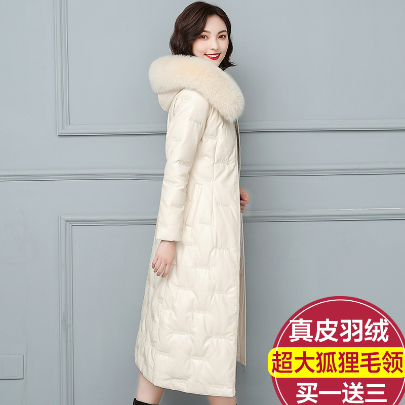 海宁真皮羽绒服女中长款修身韩版加厚狐狸毛领绵羊皮皮衣过膝外套