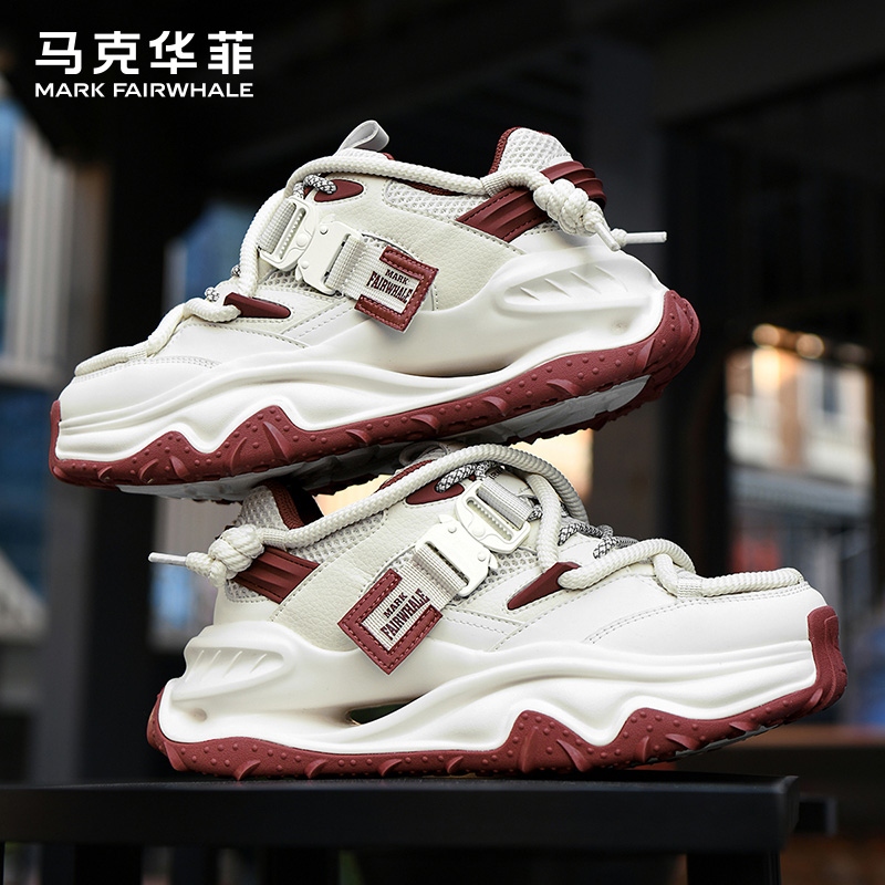 马克华菲男鞋2025冬季新款百搭老爹鞋男士透气厚底增高运动休闲鞋