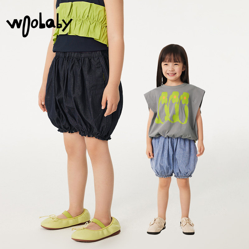woobaby女童牛仔短裤夏季小童女宝宝裤子女孩四分南瓜裤休闲裤