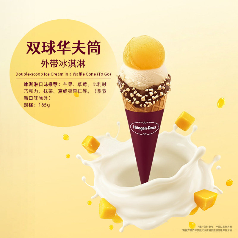 【到店兑换】哈根达斯冰淇淋双球华夫筒经典口味通用电子券