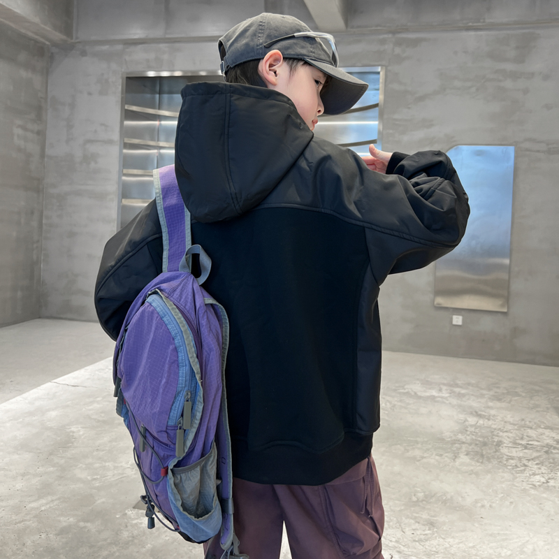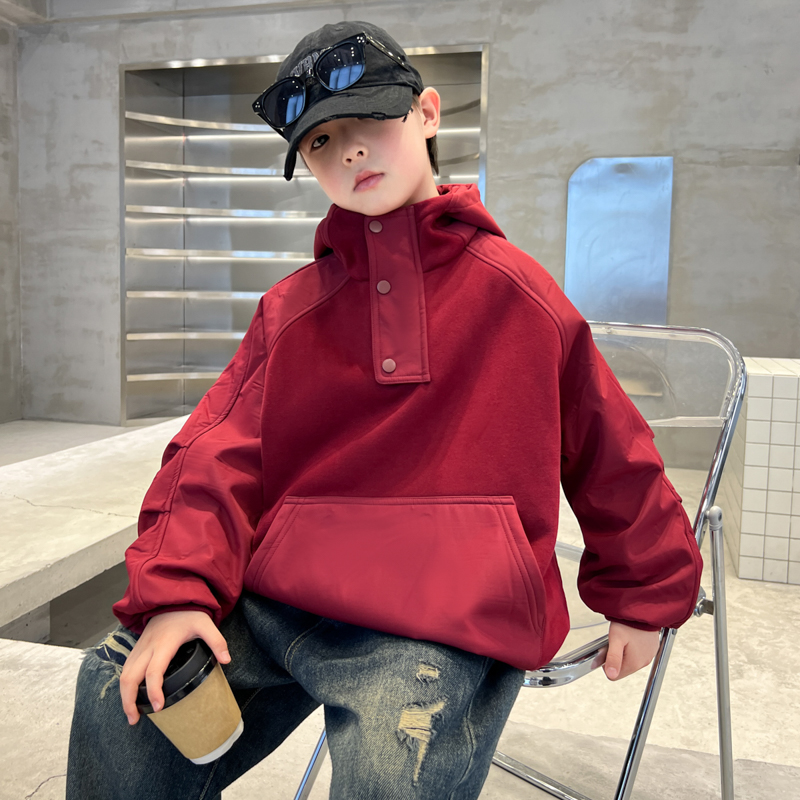 男童连帽加绒卫衣秋冬2025新款儿童红色一体绒打底衫中大童年服潮