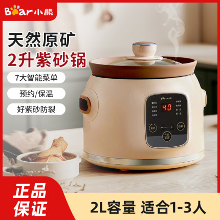 小熊电炖锅全自动紫砂锅煲汤家用多功能汤锅电炖盅2L煮粥神器小型
