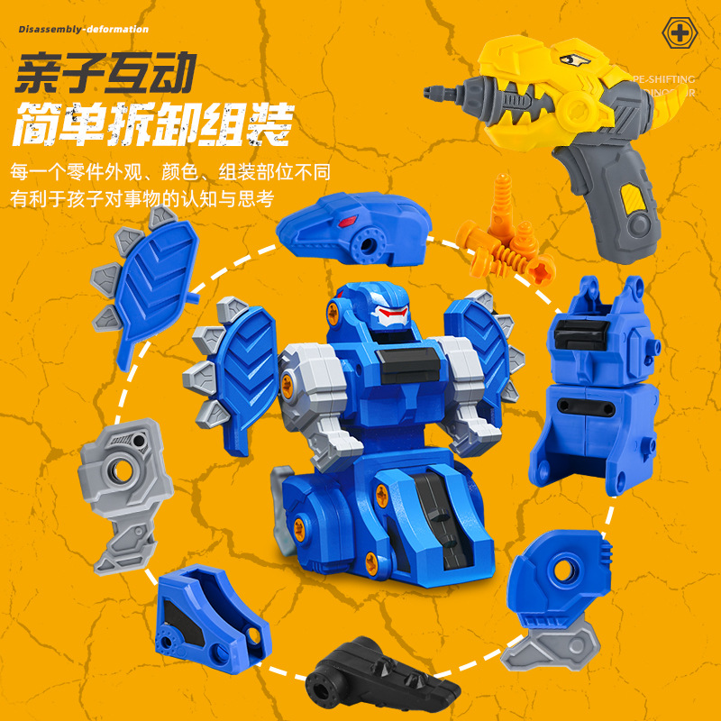 新款男孩拼装恐龙变机器人组合套装双向电钻拧螺丝儿童拆装玩具
