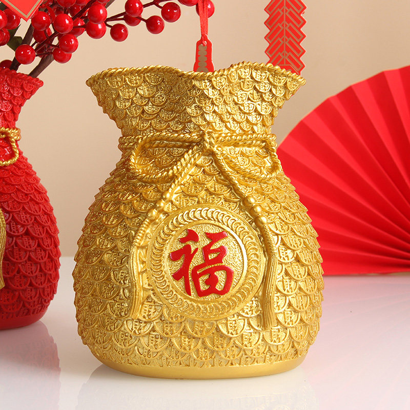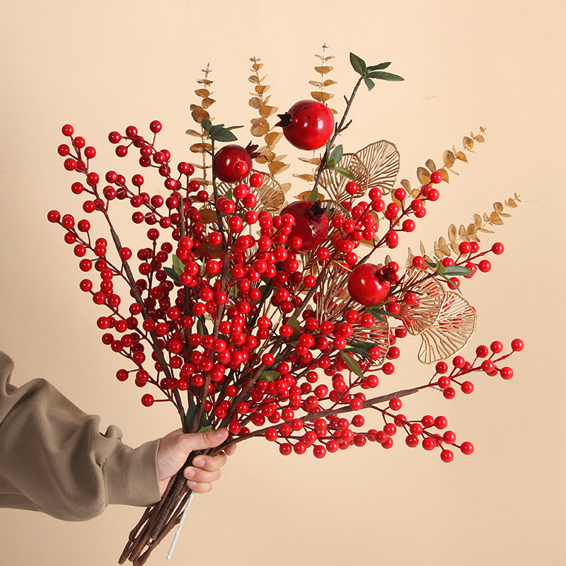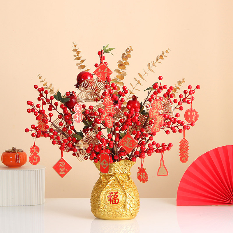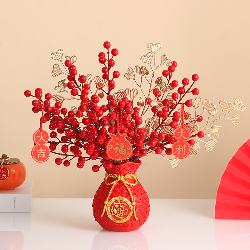 福袋花瓶发财果红果冬青仿真花客厅电视柜摆设新年装饰品乔迁摆件
