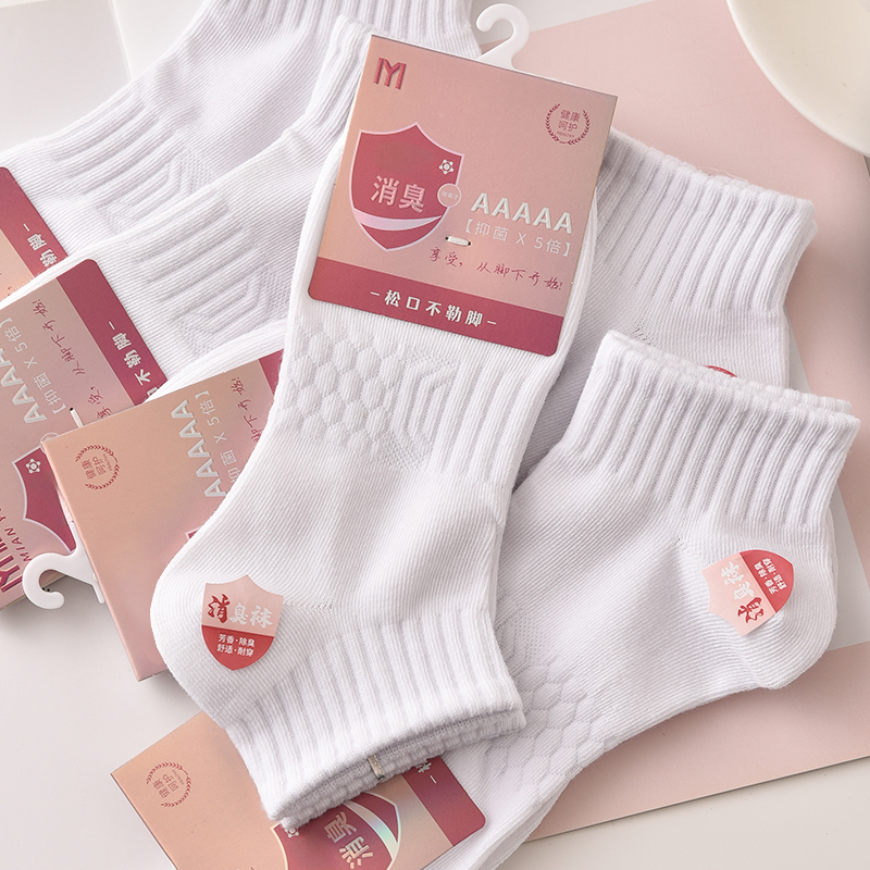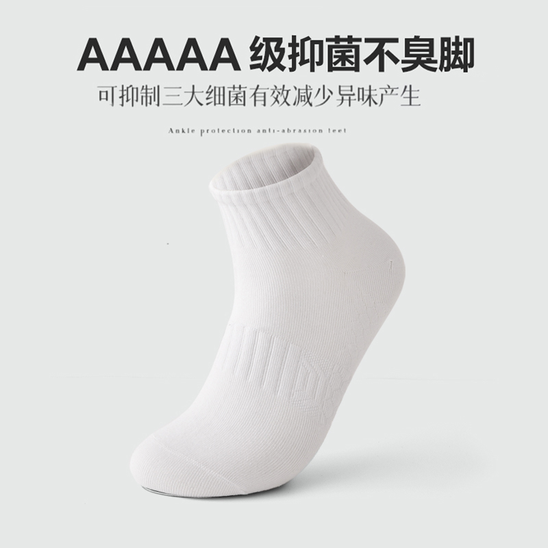 白色袜子男款短袜春秋季男士运动袜子全棉防臭吸湿排汗纯棉中筒袜