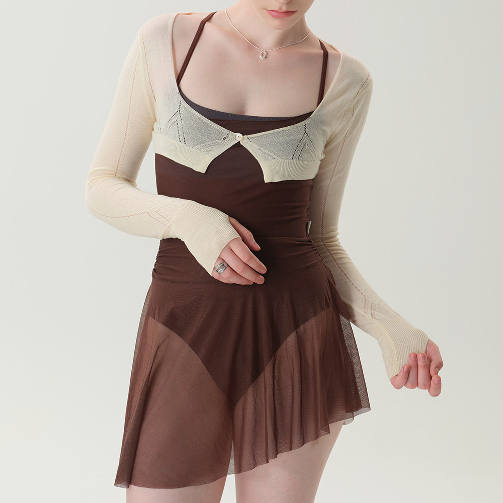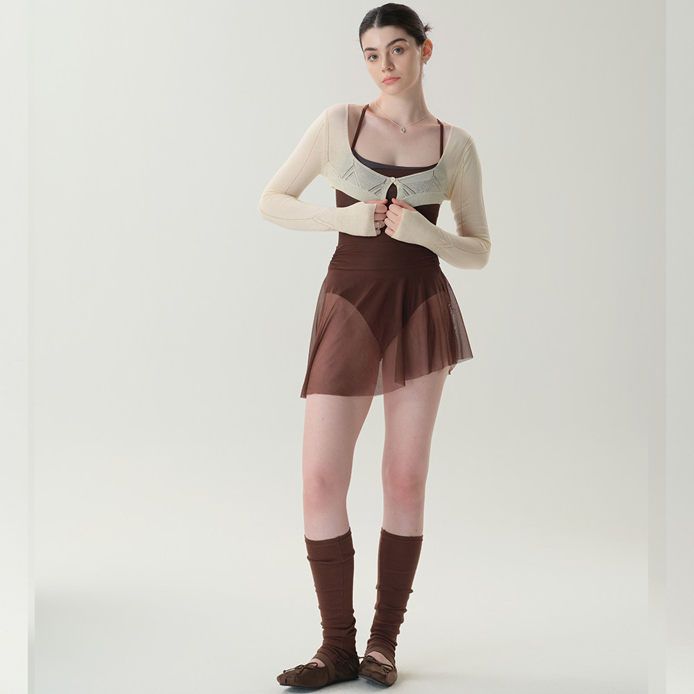 Ssiissuu芭蕾舞蹈连体服网纱运动练习红褐色莱卡吊带连衣裙8003