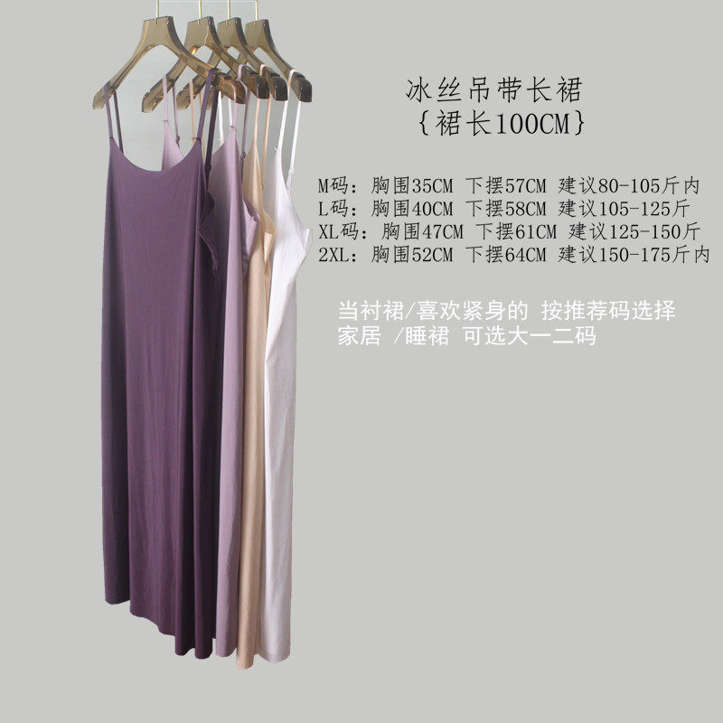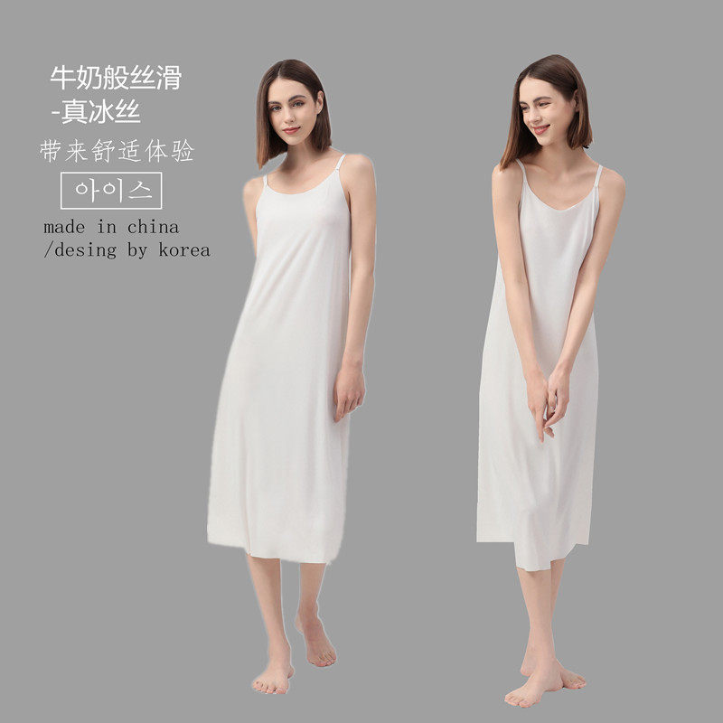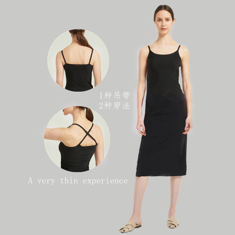 防透吊带内衬裙超薄冰丝内搭修身打底裙加长款吊带背心裙防走光夏