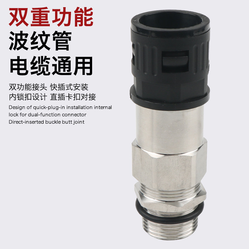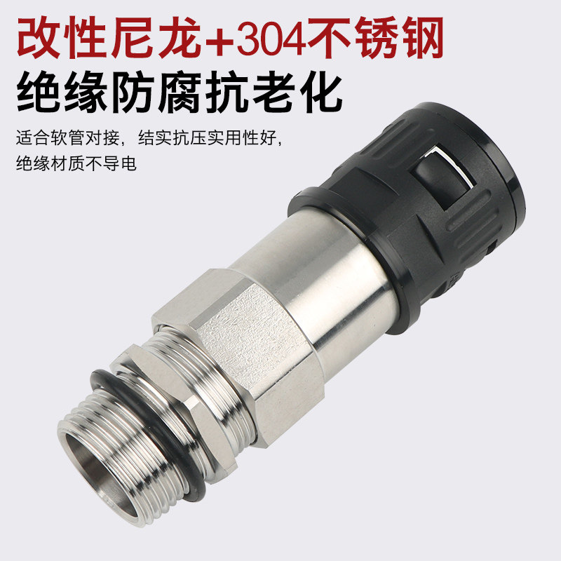 双锁紧波纹管防水管接头不锈钢接管式尼龙快插组合式格兰头