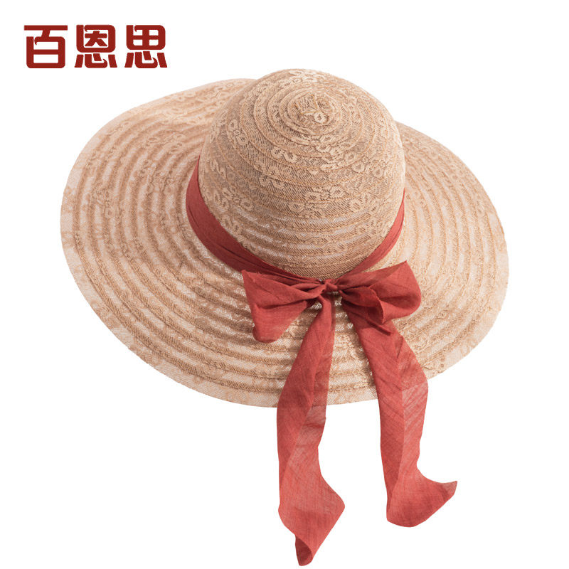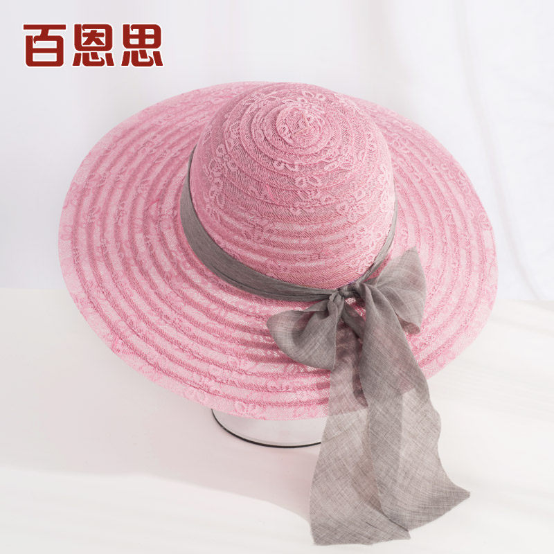 草帽女士春夏季夏天海边度假大檐沙滩帽子防晒遮阳蕾丝可折叠户外
