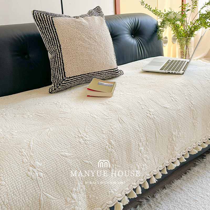 蔓越家 竹茉 法式绣花水洗棉沙发垫纯棉沙发套罩盖巾布靠背巾坐垫