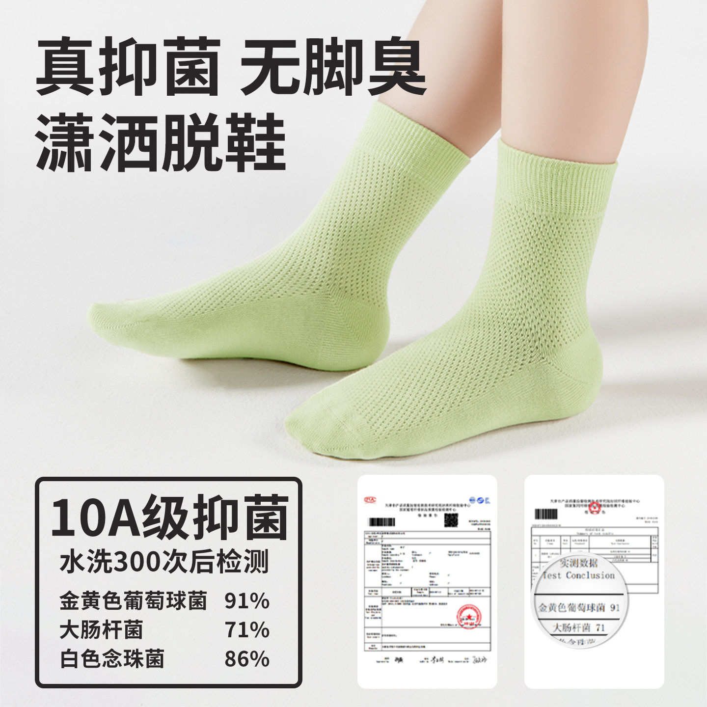 春夏纯棉抑菌防臭透气中筒童袜