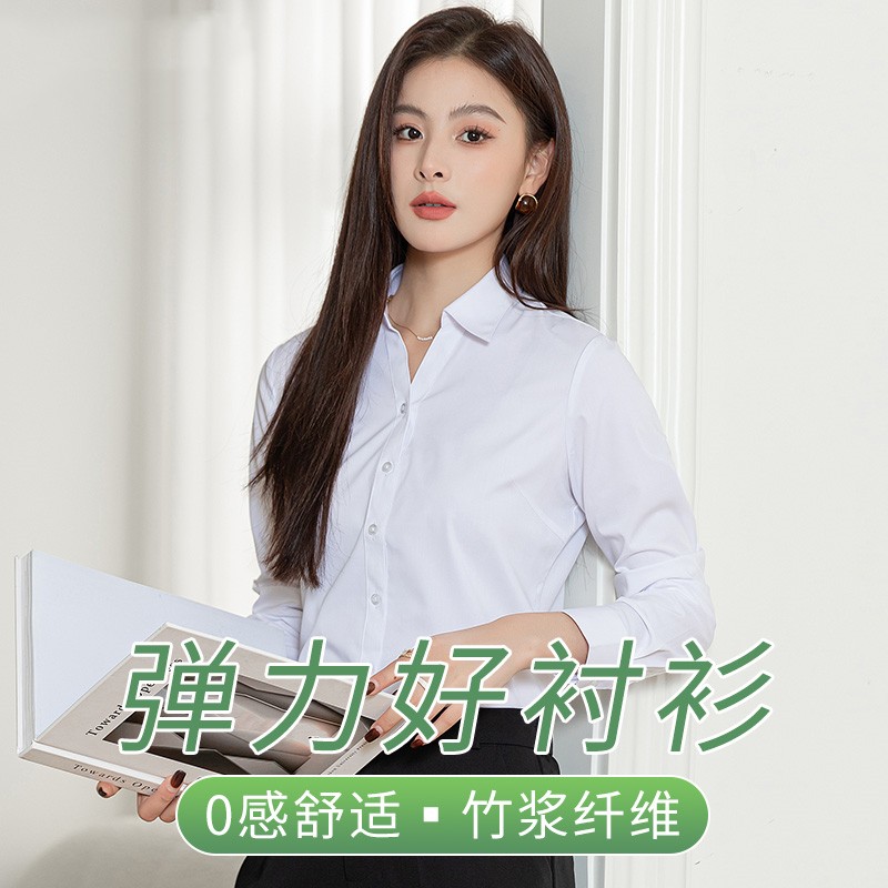 弹力女装2024春季新款女士长袖职业内搭白色衬衫正装蓝衬衣工作服