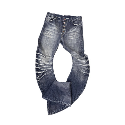 noEmosen*【原创首发】冰蓝裂痕水洗立体猫须弯刀版型雾蓝牛仔裤