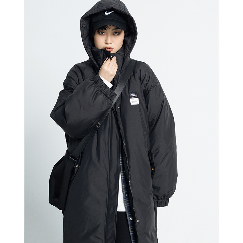 长款聚酯纤维连帽羽绒服chicven