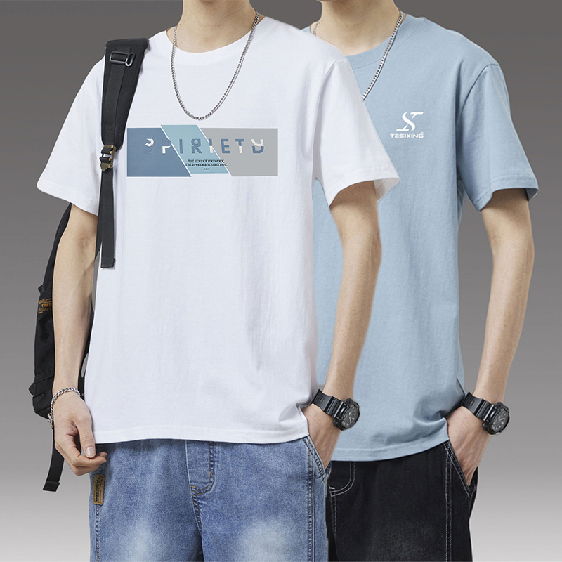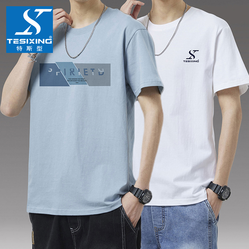 以纯YISHION纯棉短袖t恤男夏季休闲圆领体恤男士时尚宽松印花上衣