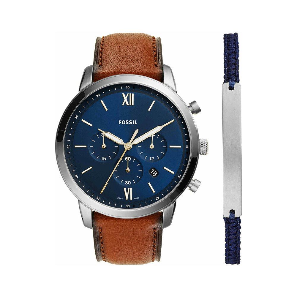 日本直邮Fossil 男士 NEUTRA 计时码表行李箱皮革手表和手链套装