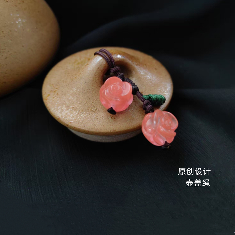 原创手工编织西瓜晶玫瑰装饰吊坠紫砂壶盖提溜田园风系壶盖防烫绳