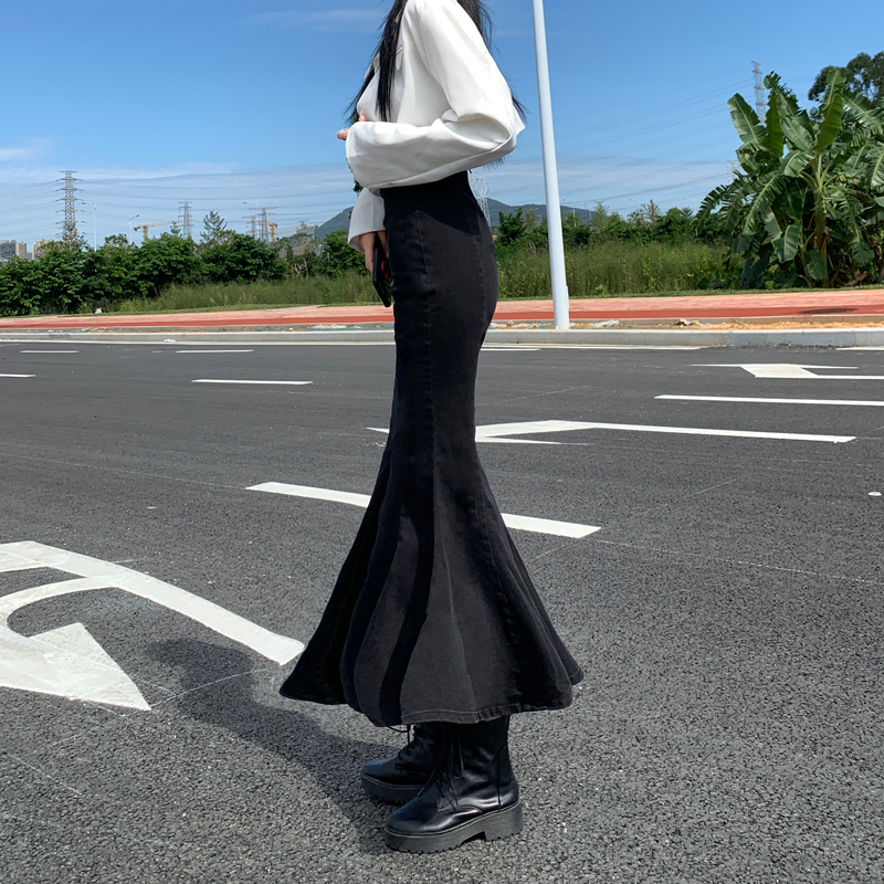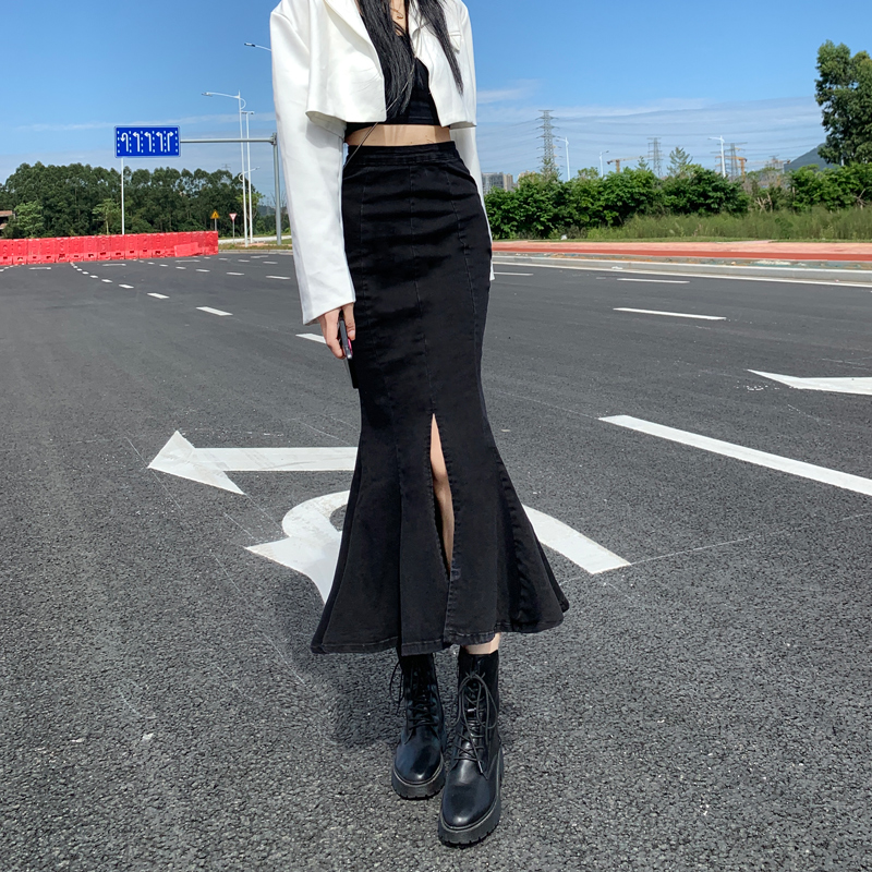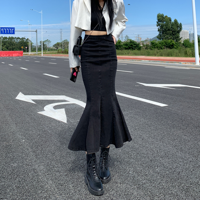 牛仔半身裙女秋季高腰显瘦梨形身材设计感中长款包臀鱼尾裙子秋装