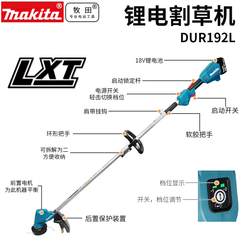 正品牧田Makita充电式割草机DUR192无线18V锂电无刷割灌机手持式