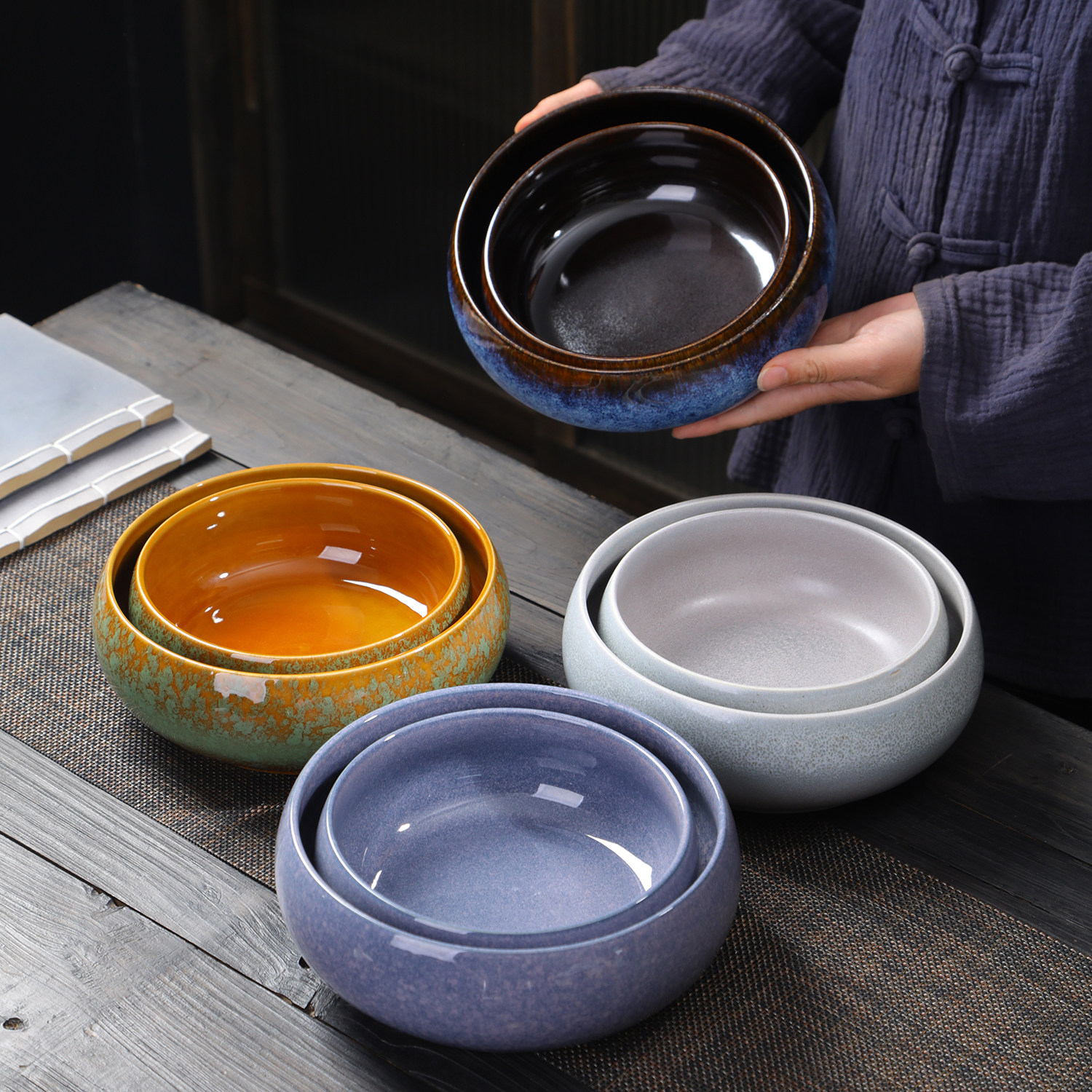 窑变茶洗粗陶大号小号水洗茶碗茶杯洗笔洗烟灰缸花盆功夫茶具零配