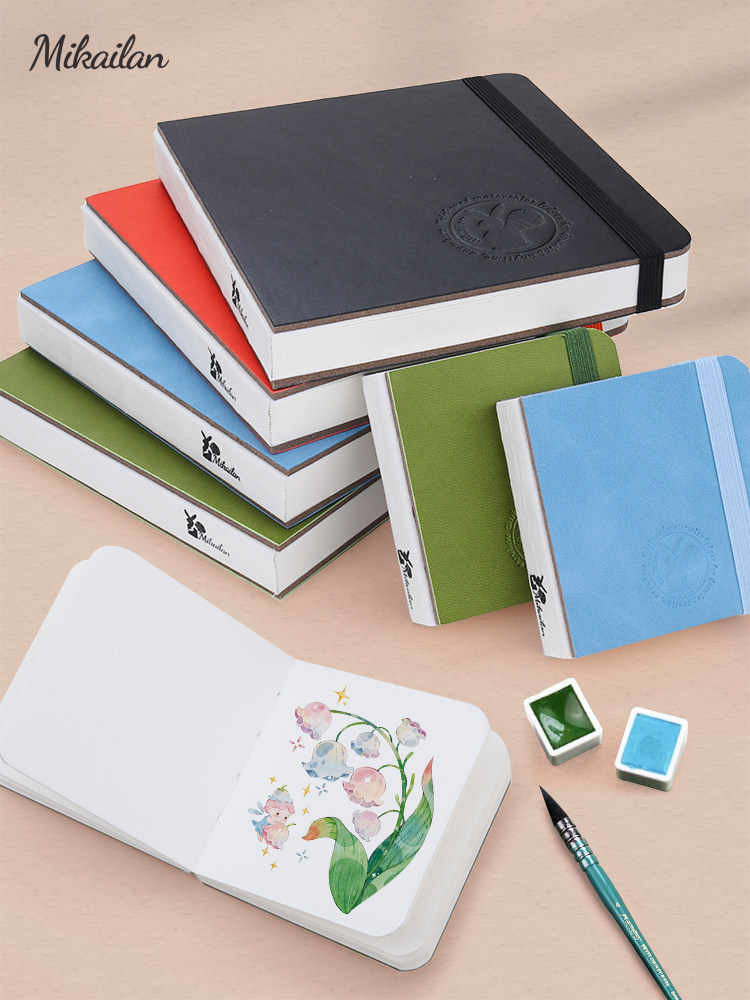 米开兰水彩本细纹300g水彩手帐速写涂鸦美术生素描随身旅行口袋本