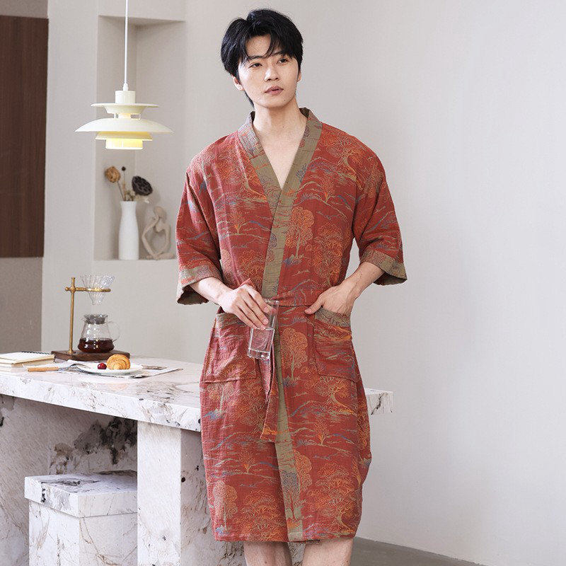 浴袍男士纯棉吸水速干浴衣双层纱布四季通用睡衣夏季薄款全棉睡袍