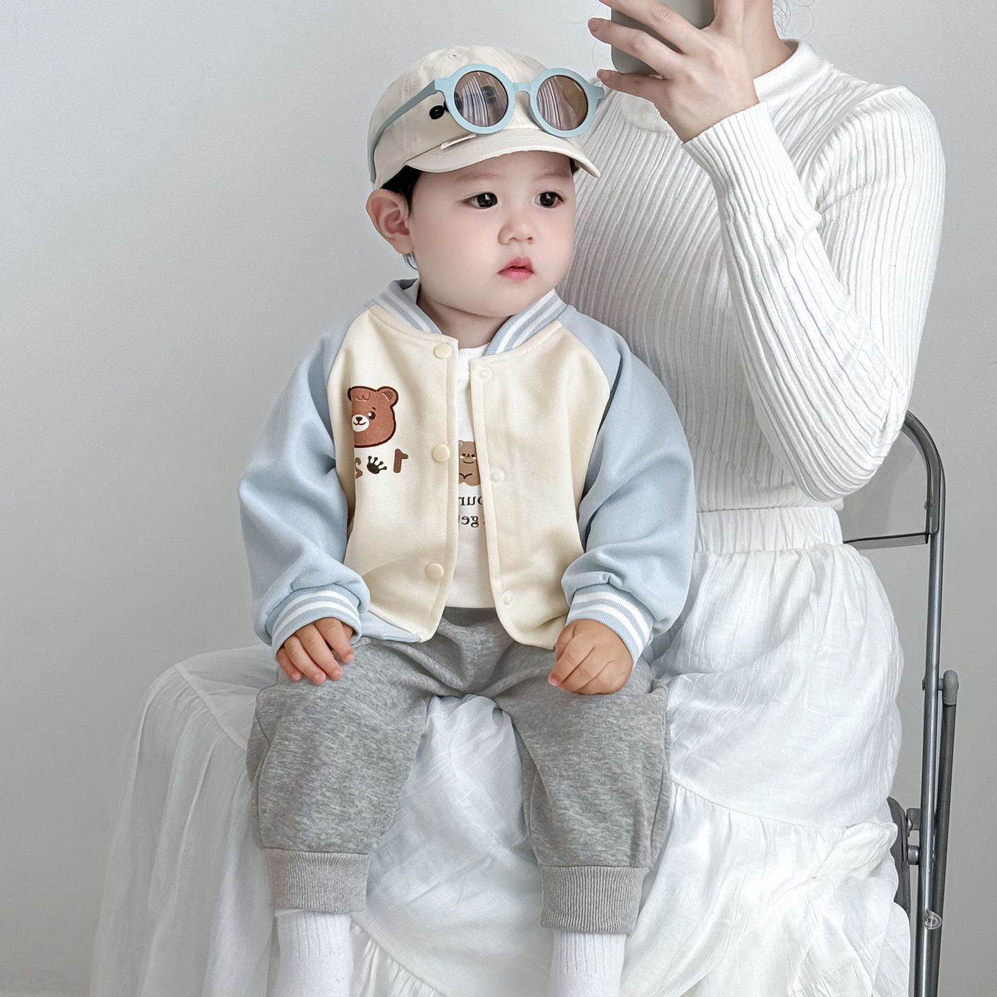 男童套装秋装男宝宝棒球服三件套儿童加厚婴儿外出服洋气秋冬卫衣