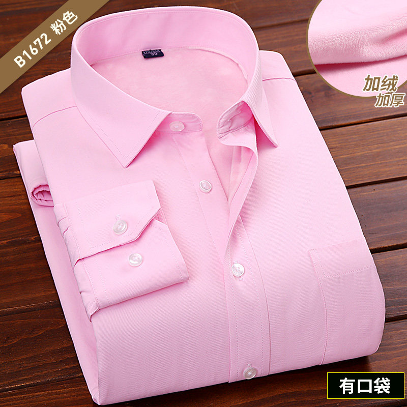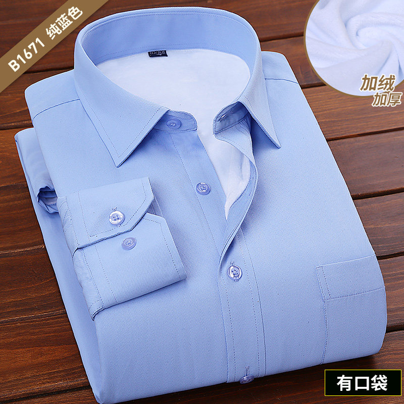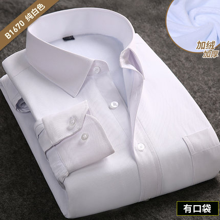 免烫胖子加绒加厚秋冬保暖白衬衫
