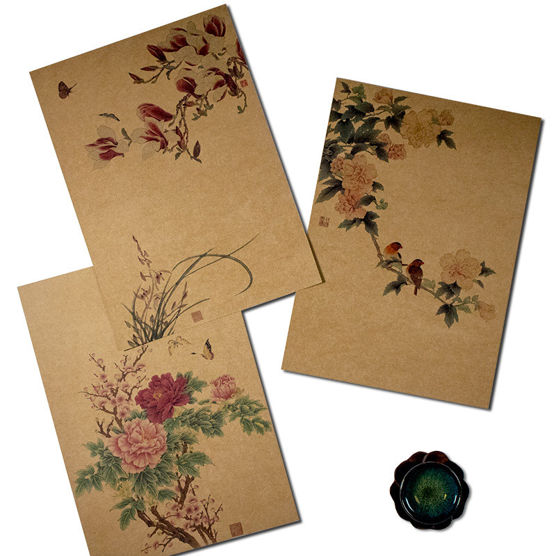中国风花鸟卡片牛皮纸拍照背景纸复古风珠宝首饰美食摆拍摄影道具