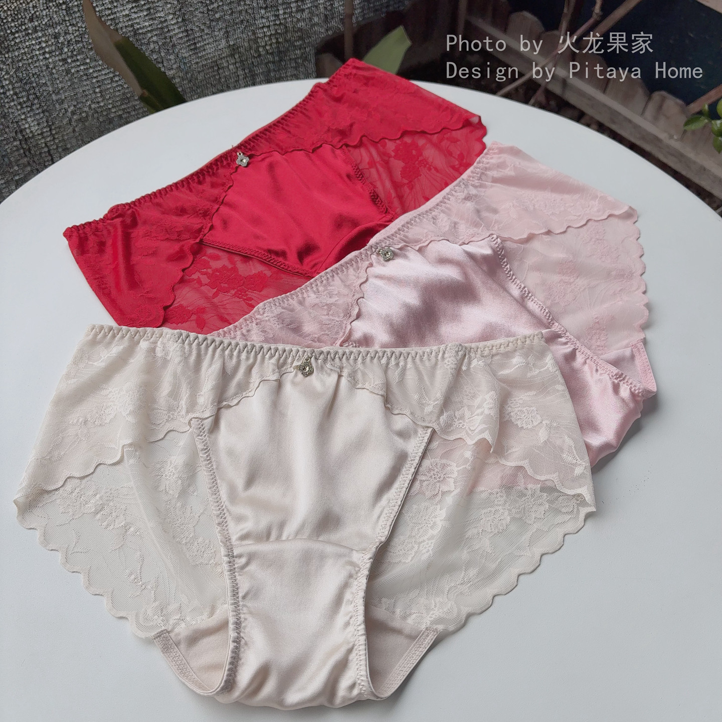火龙果家 女士年轻时尚性感舒适真丝拼蕾丝本命年中腰红内裤短裤