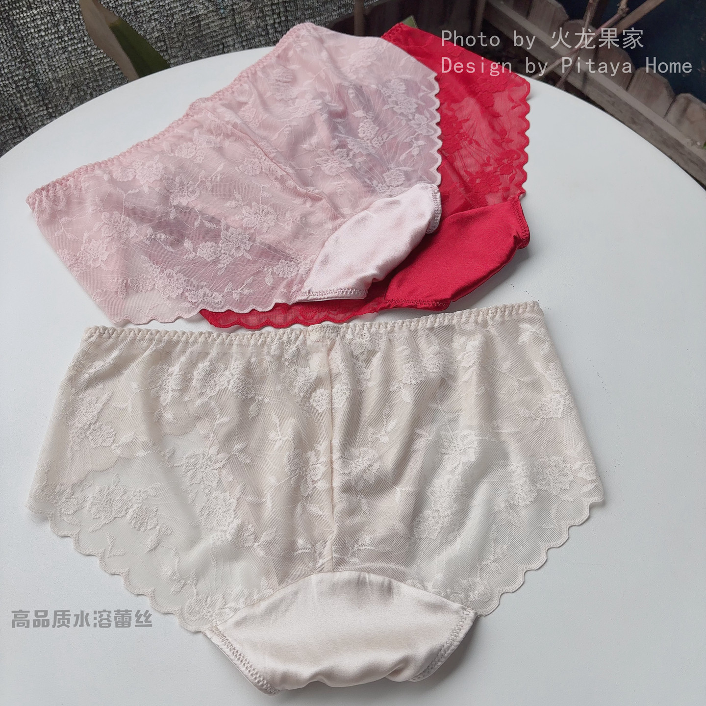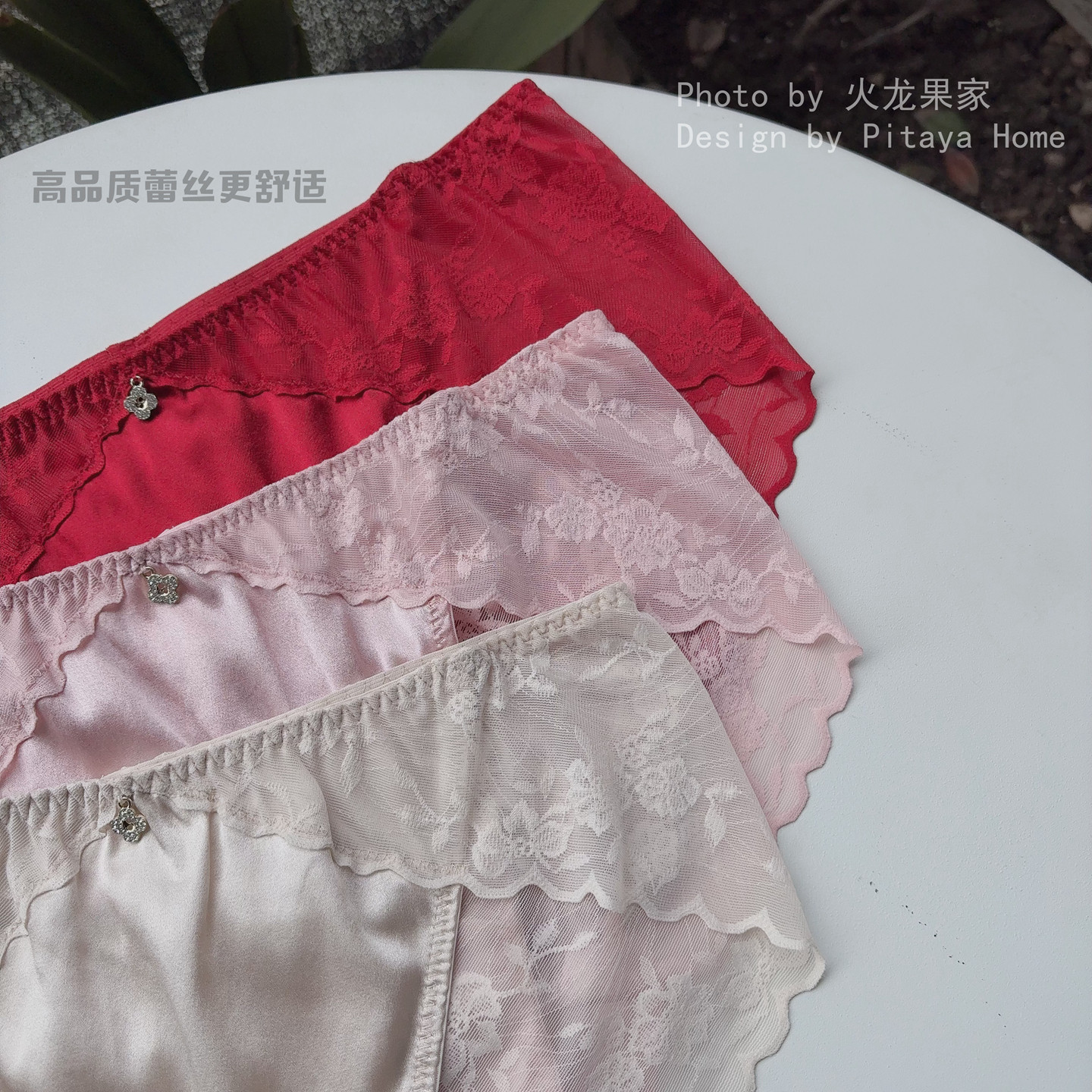 时尚性感真丝拼蕾丝中腰红内裤