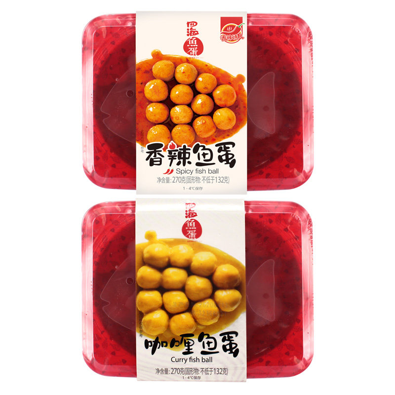 四海鱼蛋鲜装咖喱鱼蛋香港口味街头小吃咖喱鱼丸微波炉加热即食