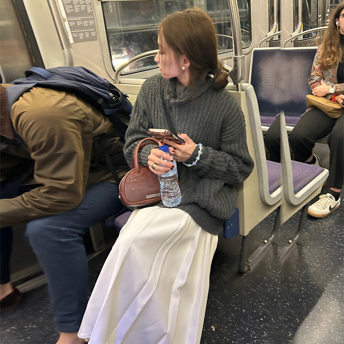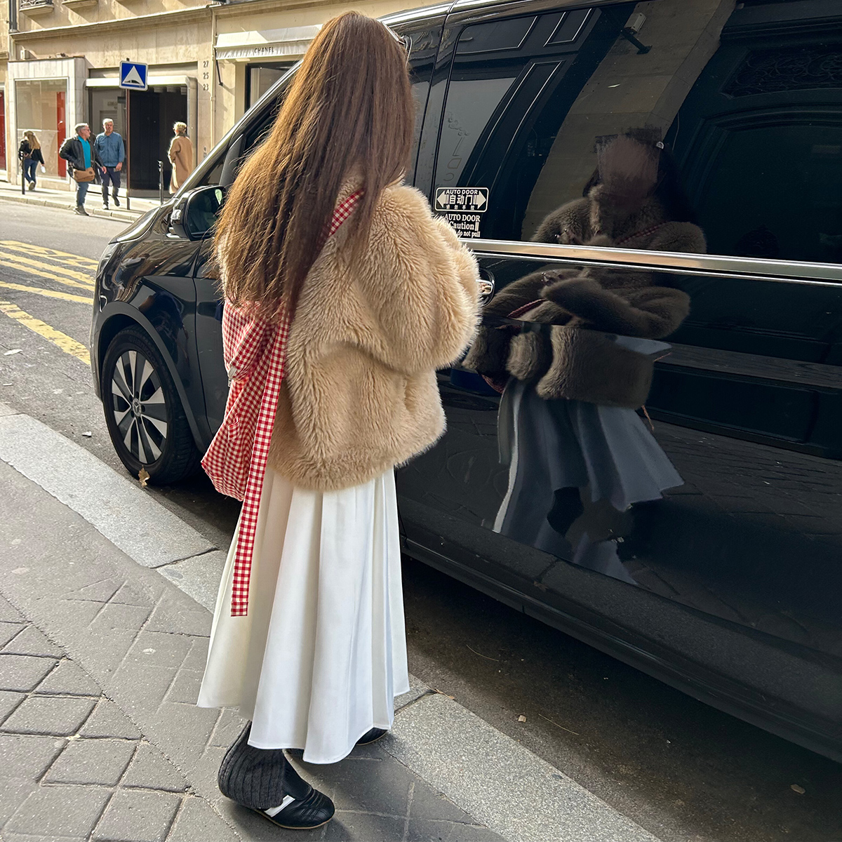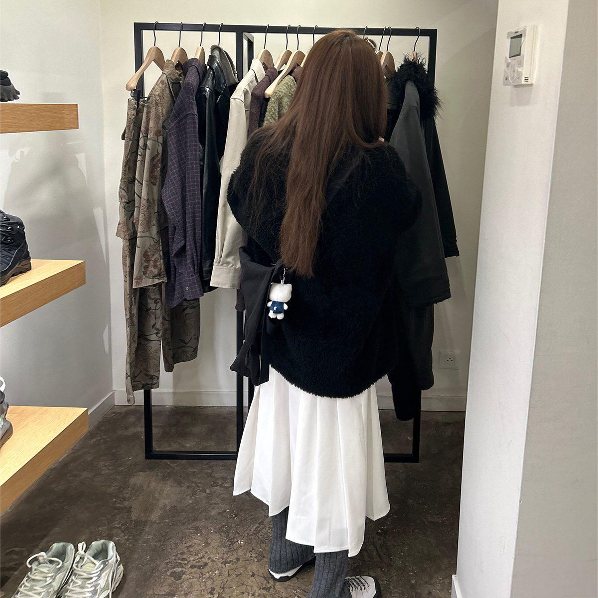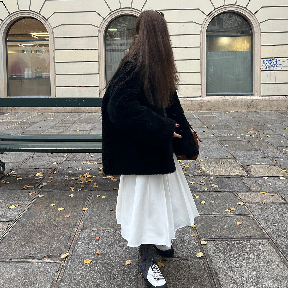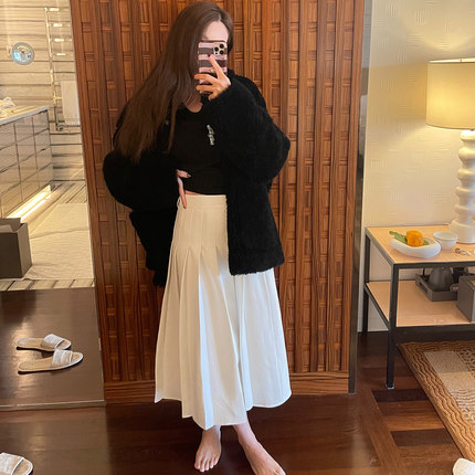 Avocadong 秋冬百搭单品厚款白色百褶半身裙女高腰长裙