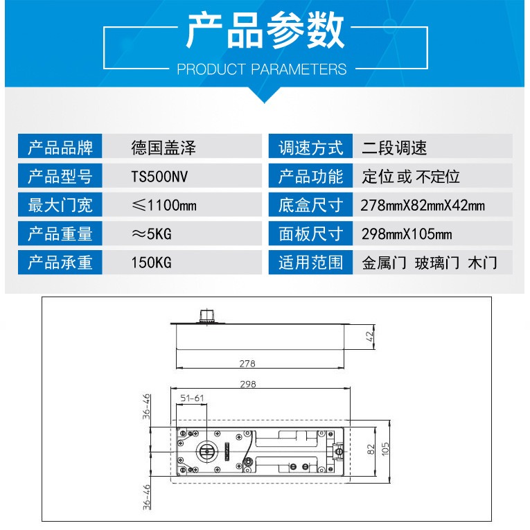 GEZE德国盖泽地弹簧TS500NV木门玻璃门有框无框门承重150KG地弹簧