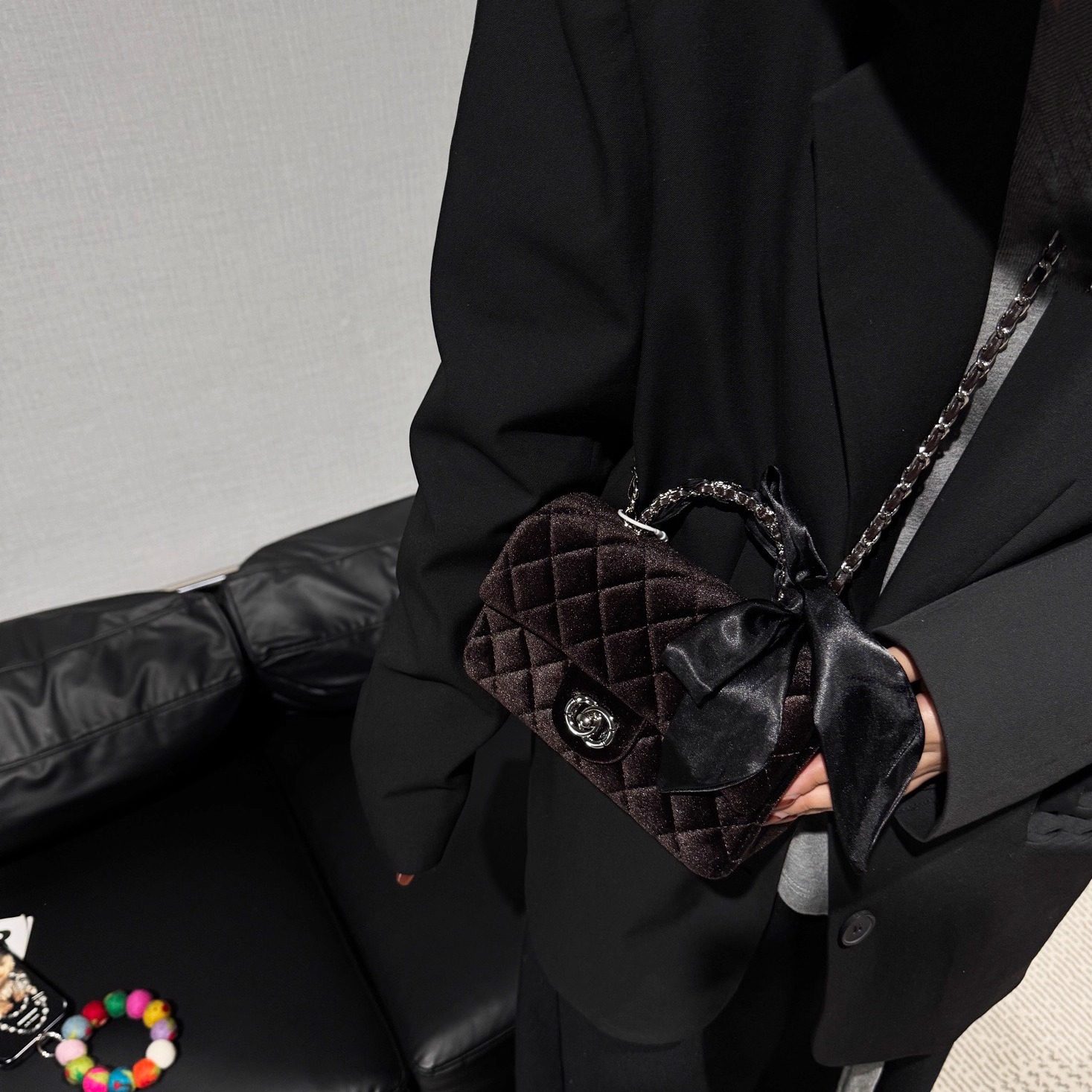 小香风丝绒菱格链条包斜挎小方包