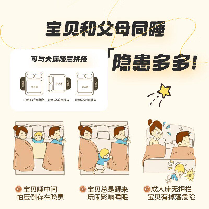 婴儿床实木儿童拼接床带z护栏可移动床边加宽大人可睡