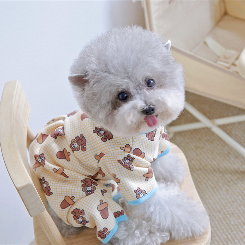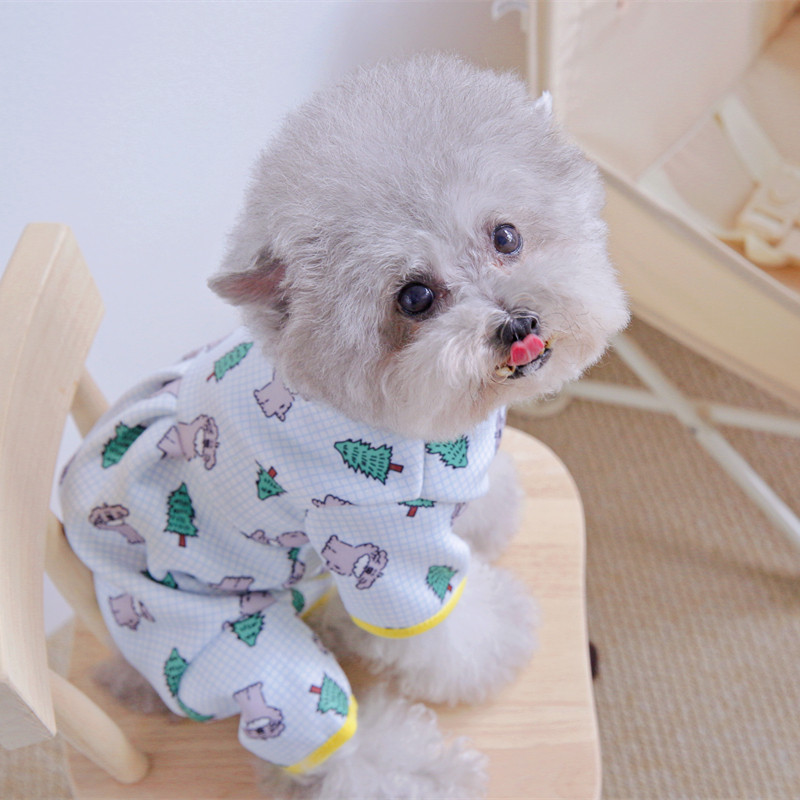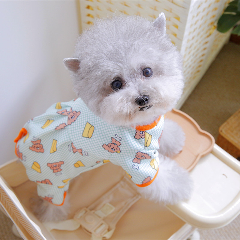宠物比熊博美泰迪狗狗衣服春秋装春装四脚衣睡衣满印家居服包肚装