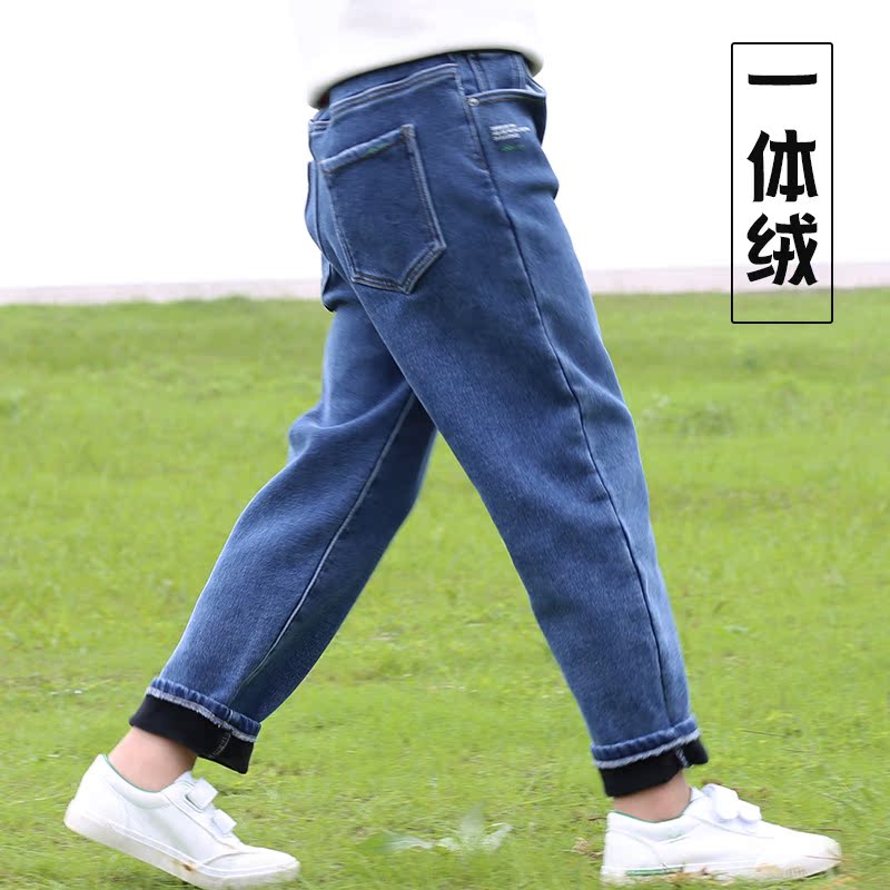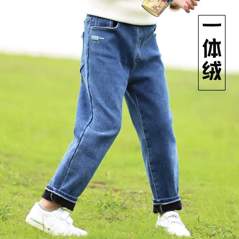 男童加绒裤子一体绒儿童秋冬款保暖裤加厚牛仔裤中大童棉裤弹力潮