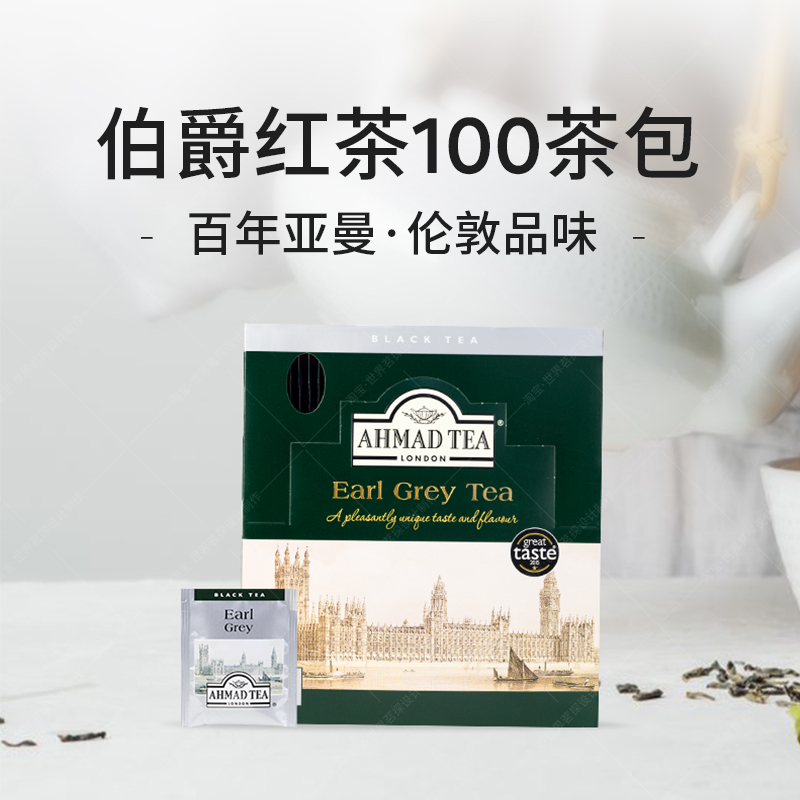 AHMAD tea英国亚曼伯爵红茶100片茶包英式格雷伯爵红茶earl grey