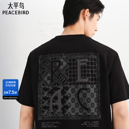 【商场同款】太平鸟男装T恤25秋季新款重磅印绣短袖潮 B1CNF3120