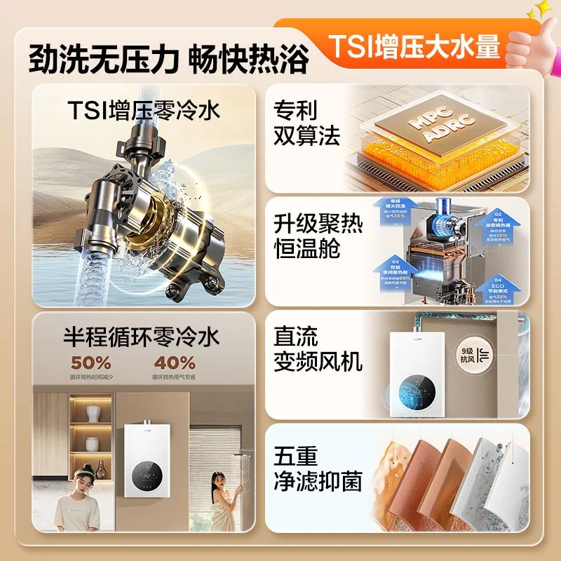 海尔燃气热水器家用16升一级静音水伺服节能双增压零冷水天然气款