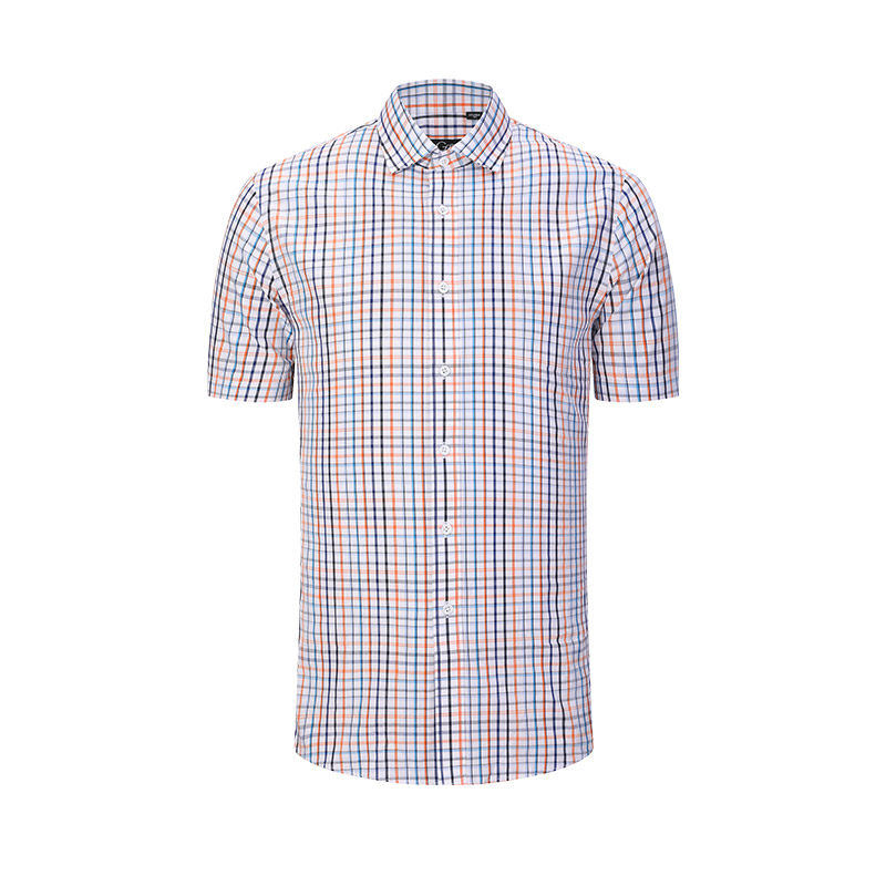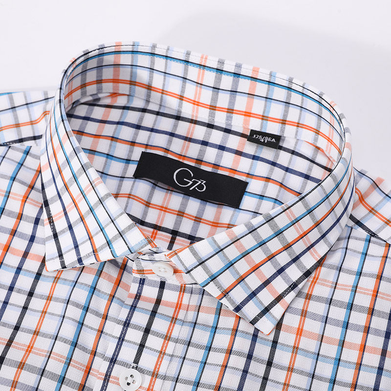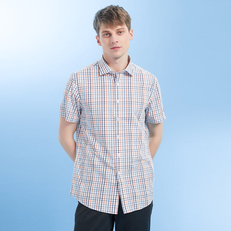 Giuseppe乔治白夏季男竹纤维轻薄短袖衬衫撞色格子休闲修身衬衣