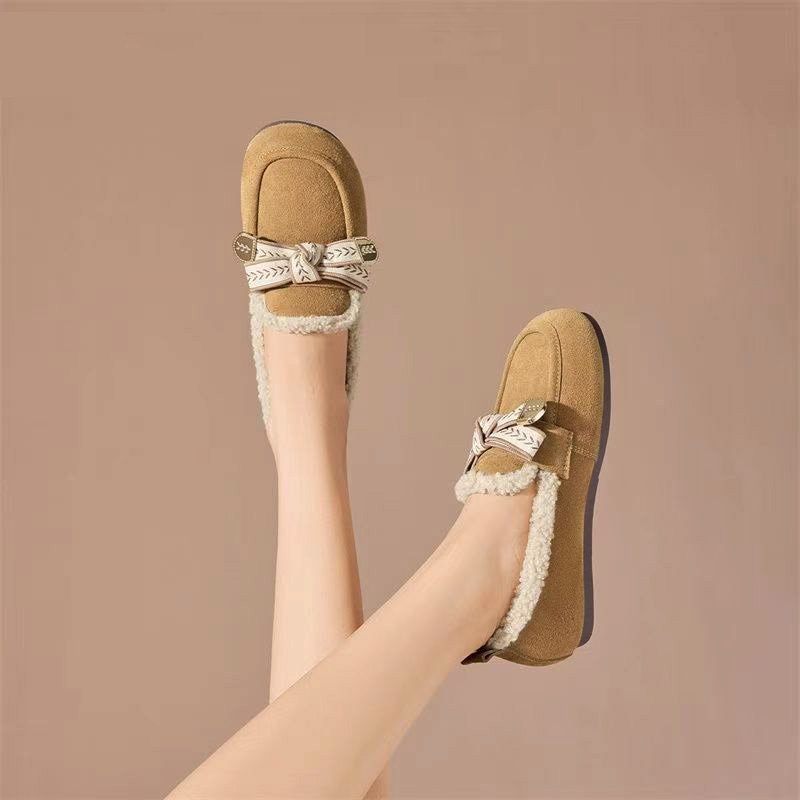 毛毛鞋女冬季复古勃肯鞋平底软底一脚蹬乐福鞋加绒保暖棉鞋豆豆鞋