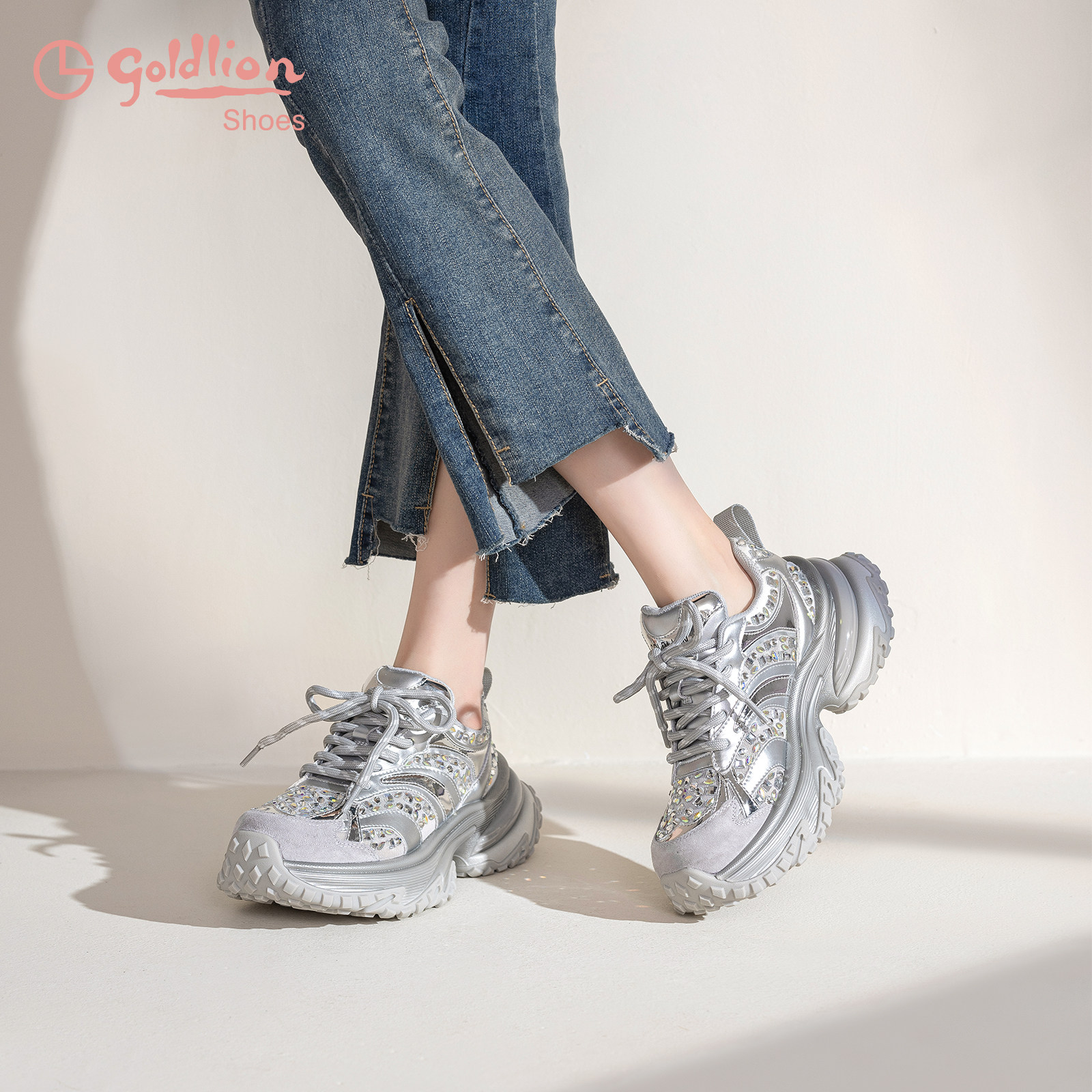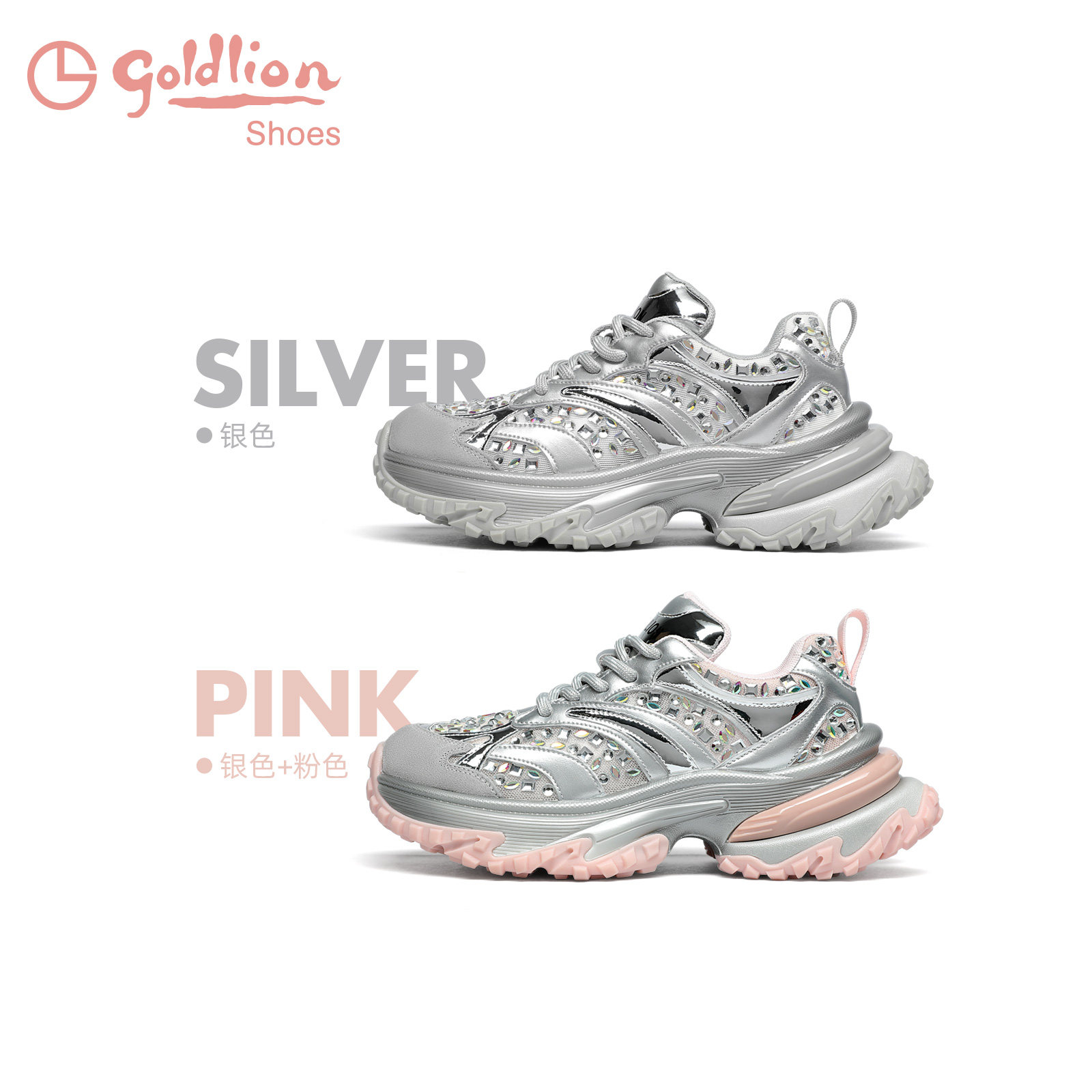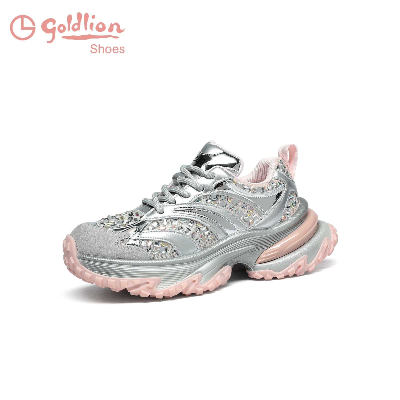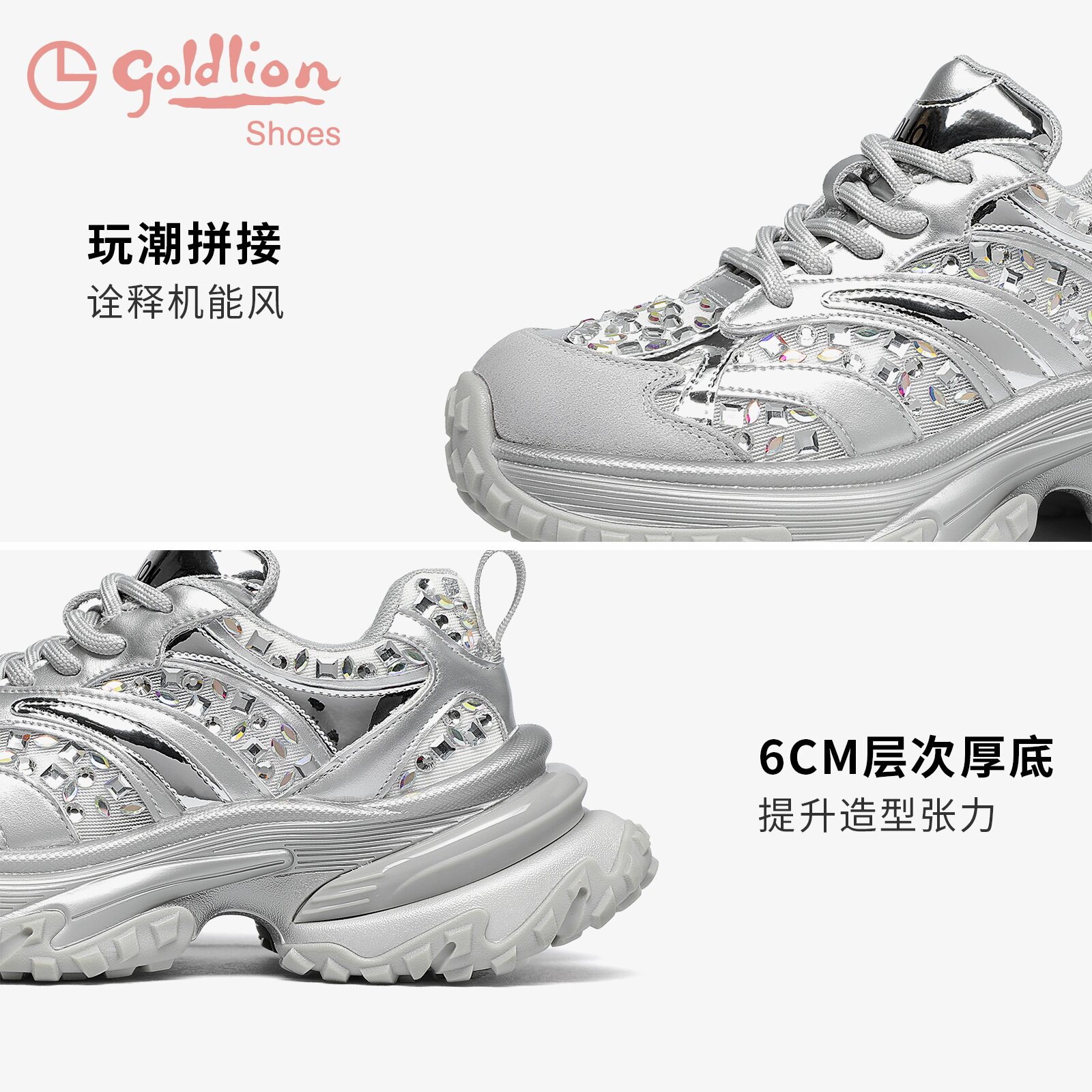 金利来女鞋商场同款春秋新款增高厚底撞色百搭水钻运动休闲老爹鞋