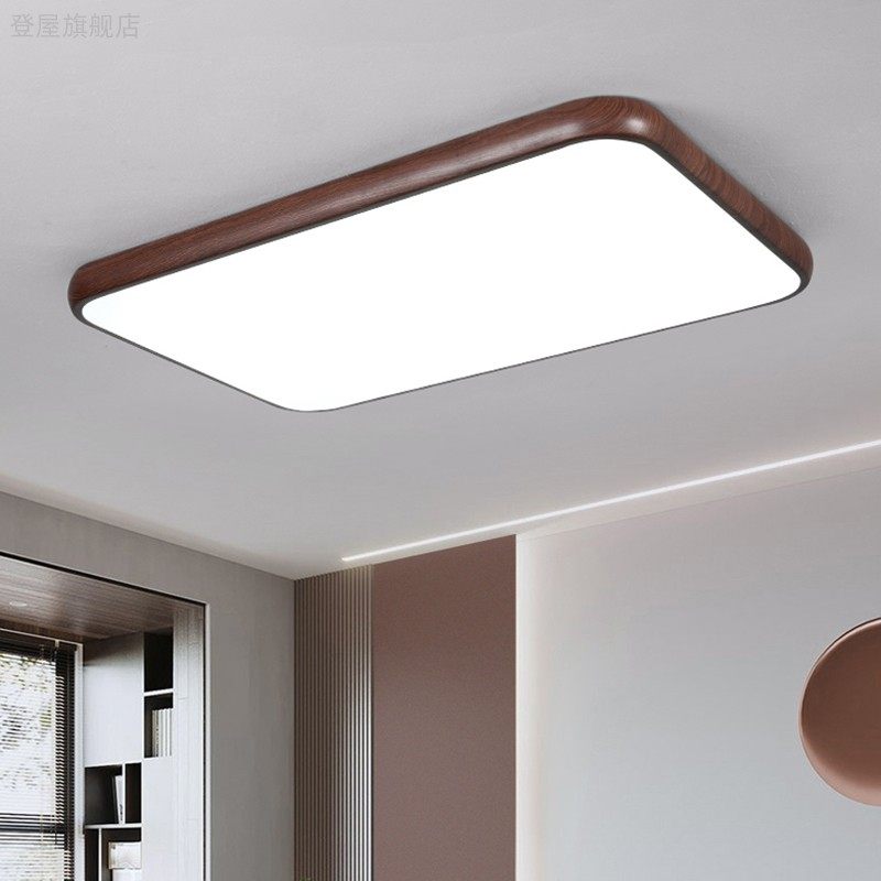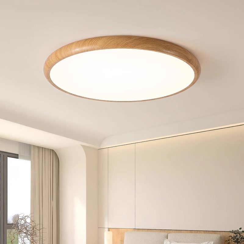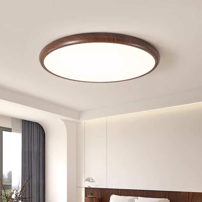 中古风卧室吸顶灯现代简约原木纹客厅房间阳台新中式护眼书房灯具