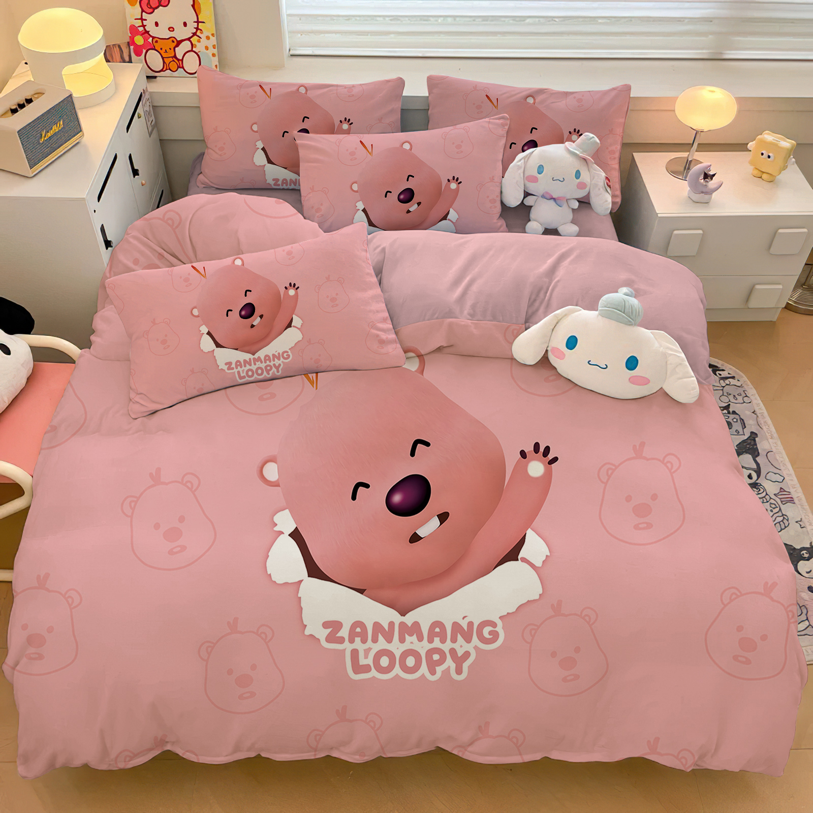 小海狸loopy卡通可爱床单被套全棉四件套儿童学生单人床品三件套