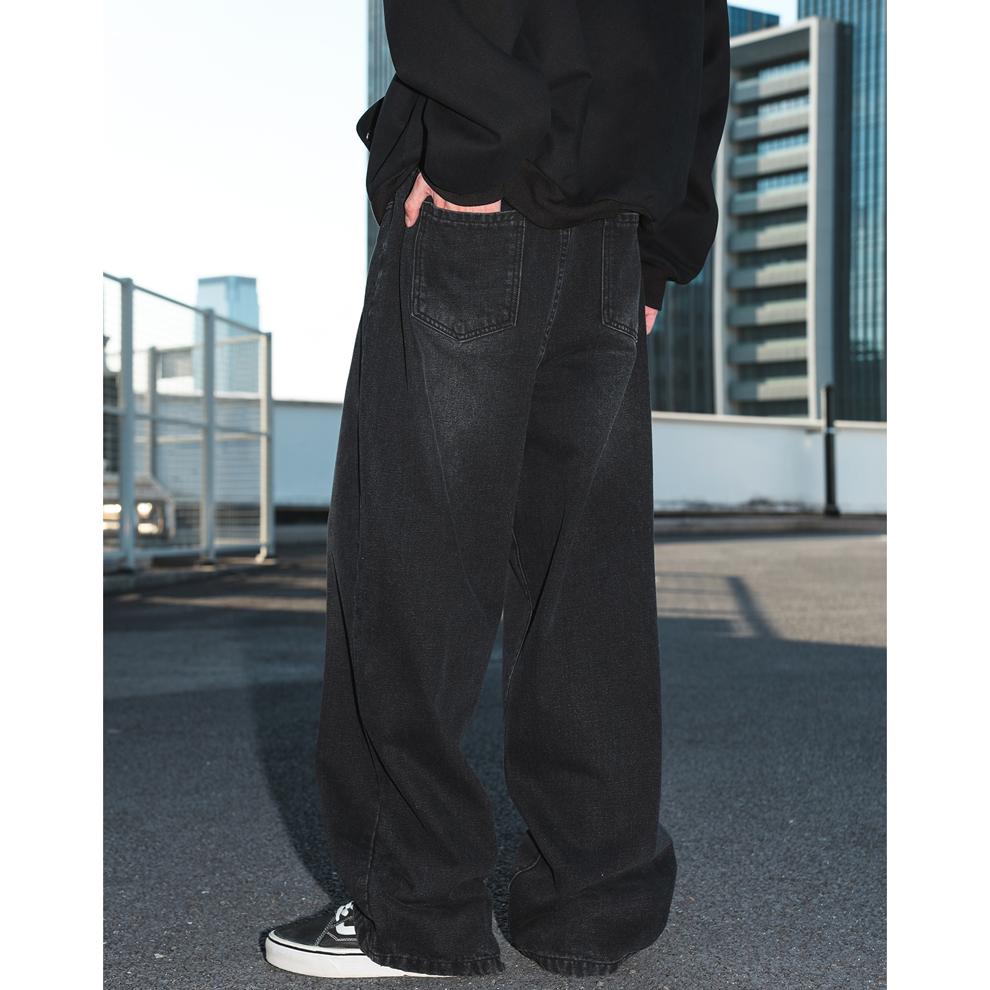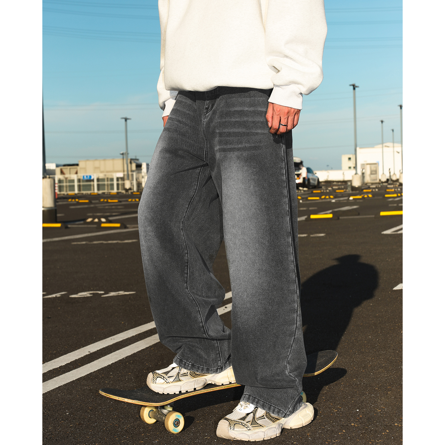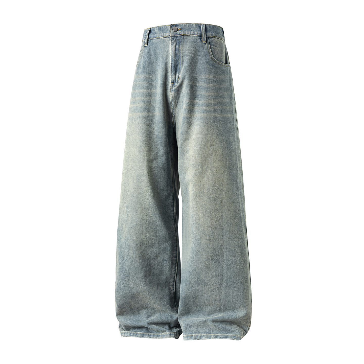 WASSUP美式浅色水洗蓝牛仔裤cleanfit复古直筒宽松做旧阔腿长裤子