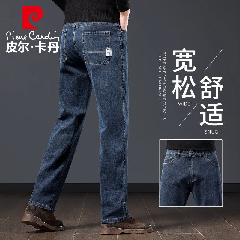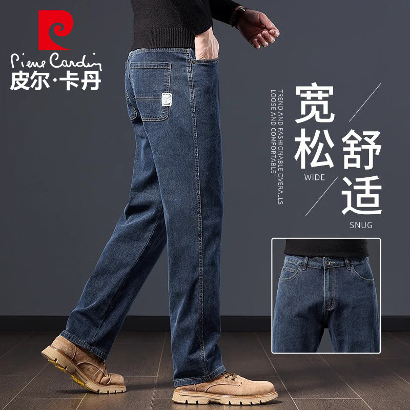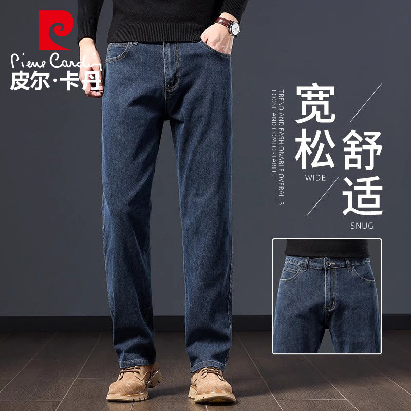 皮尔卡丹高端2025秋冬加绒牛仔裤男士直筒宽松中年厚款休闲长裤子