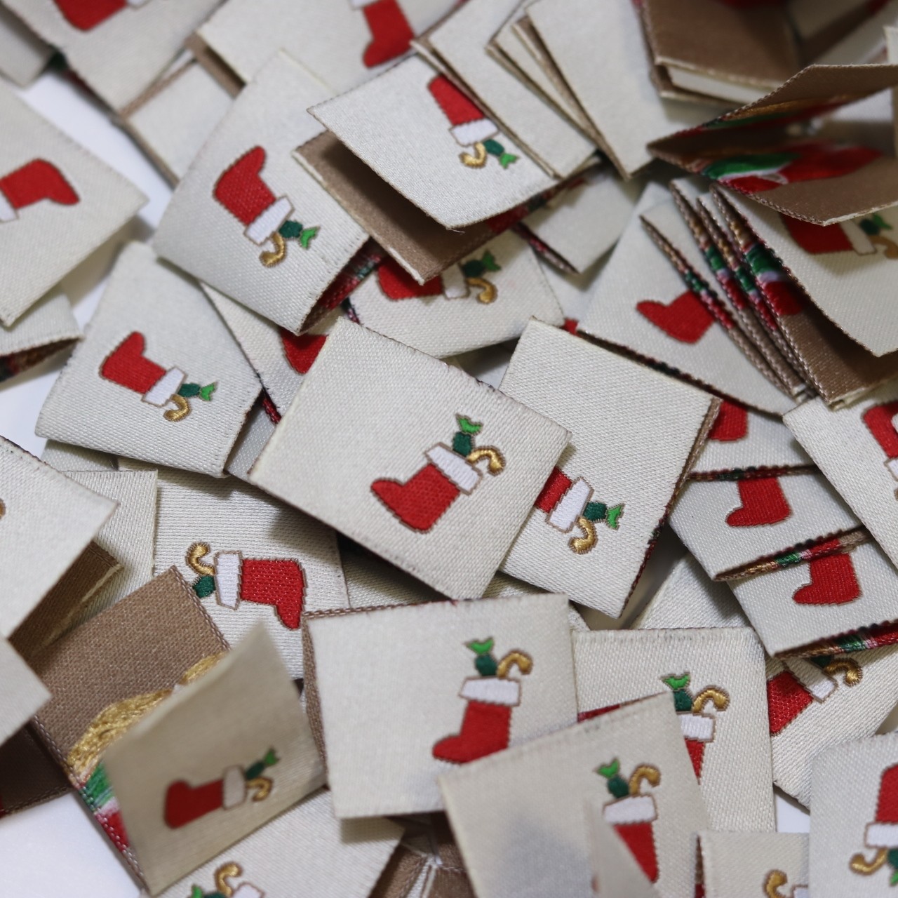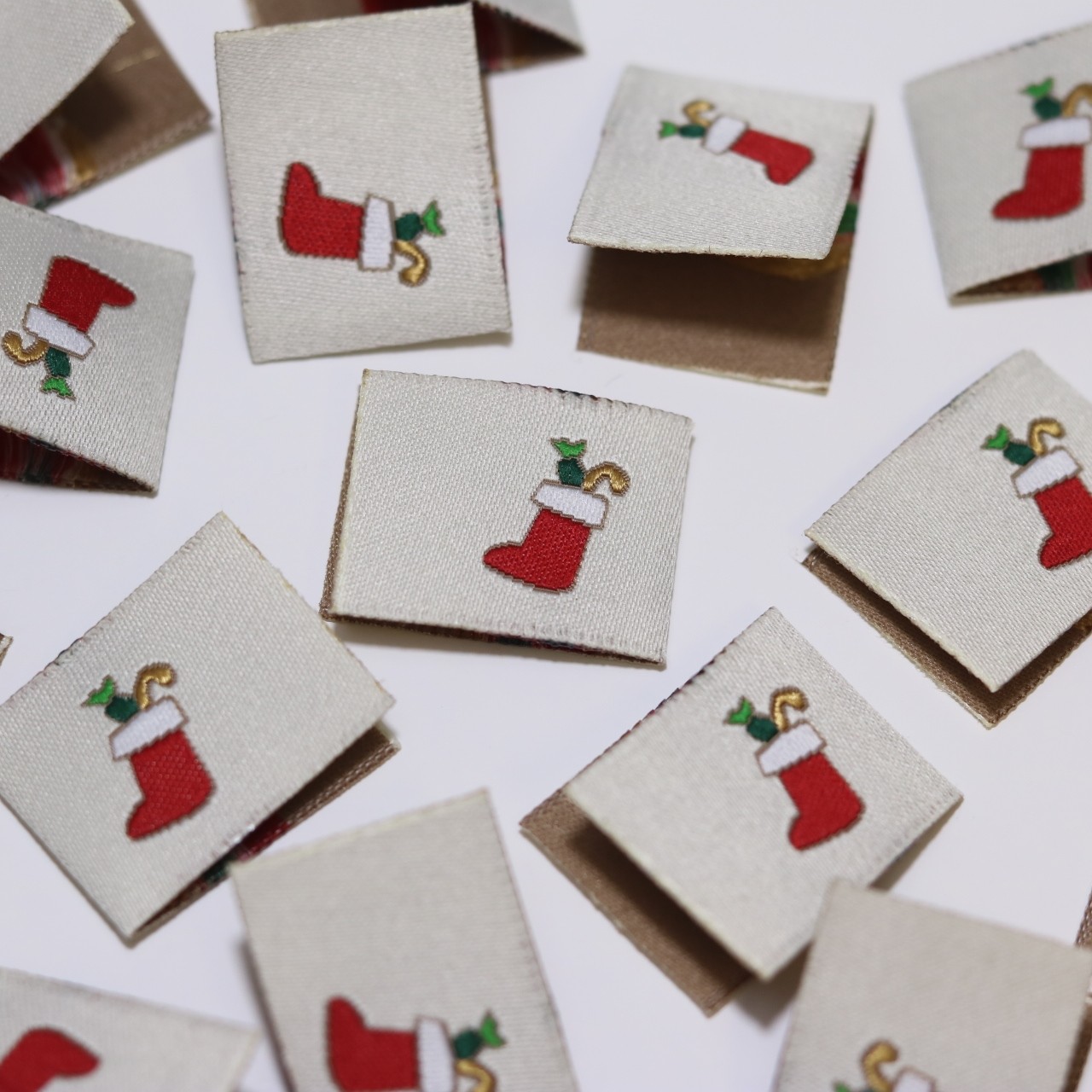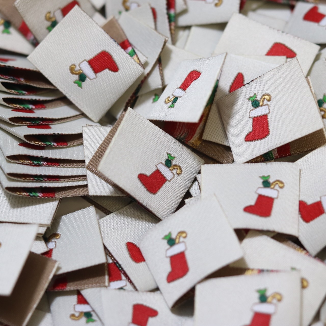 红色圣诞袜布标装饰织唛领标洗标服装辅料织标商标大肠圈辅料现货