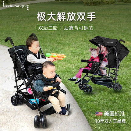 kinderwagon二胎双人推车HOP双胞胎婴儿车大小宝轻便折叠儿童伞车